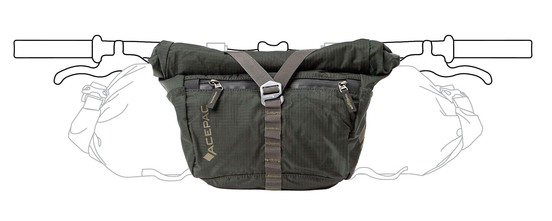 Die Bar Bag MKIII eignet sich als Zusatztasche zur Befestigung an der Acepac Bar Roll Lenkertasche oder dem Bar Harness (separat erhältlich und nicht im Lieferumfang enthalten). Alternativ kannst du diese Tasche auch direkt am Lenker befestigen.