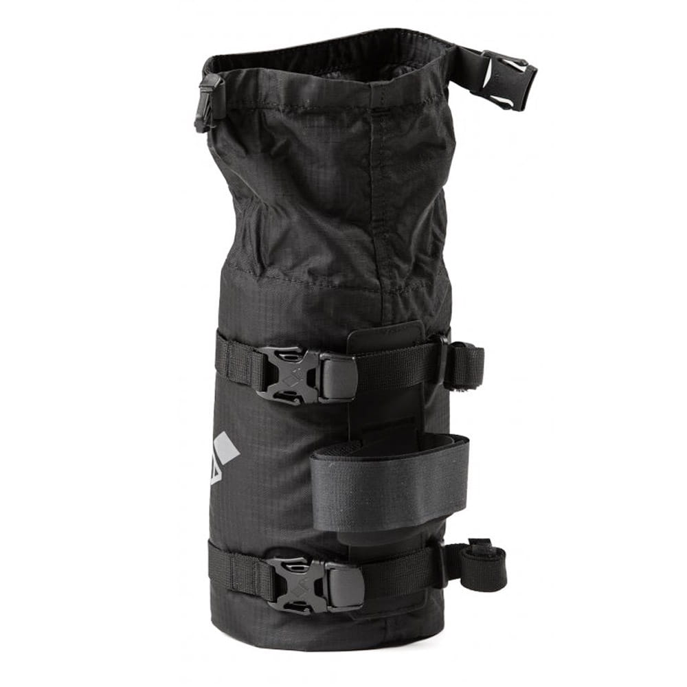 - Befestigung an Rahmen oder Gabel erfolgt mit einem Hypalon-Klettverschluss sowie zwei Kompressionsriemen mit Camlok-Schnallen
