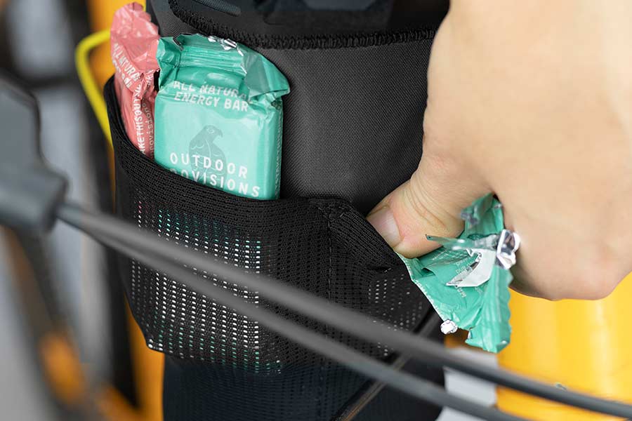 Die Backcountry Food Pouch ist eine praktische und leicht zugängliche Tasche zum Verstauen von Lebensmitteln, Sonnenbrillen, Handschuhen oder einem kalten Getränk. Die vielseitige Vorbautasche passt problemlos auf beide Seiten des Fahrrad Cockpits und funktioniert auch mit Aero- und Jones-Lenkern.