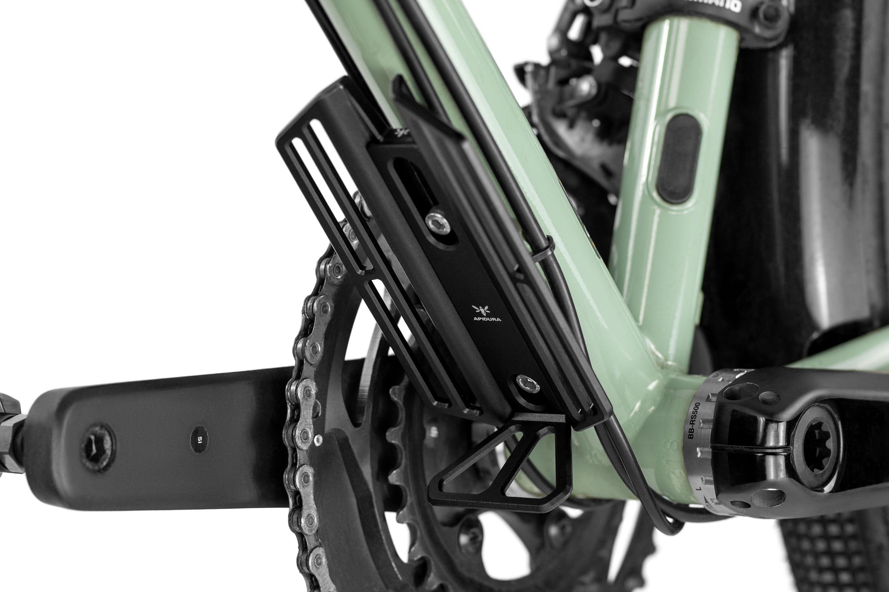 Das stromlinienförmige Design sorgt für Freiraum an Kettenblättern und Kurbelarmen und das universelle Riemenbefestigungssystem sorgt für Vielseitigkeit, egal ob du eine Apidura Gabeltasche, Voile-Straps oder andere Packsysteme verwendest.