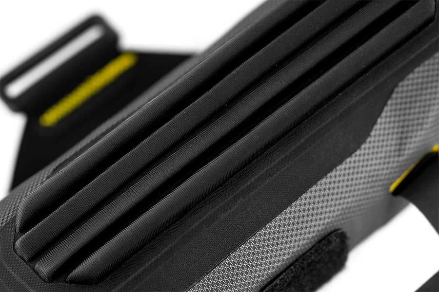 Die Apidura Expedition Downtube Pack Unterrohrtasche lässt sich sicher am Unterrohr sowie an Rohren mit ähnlichem Durchmesser befestigen und bietet einen vielseitigen und komprimierbaren Stauraum für Ersatzteile und das Nötigste für Langstreckenfahrten. Sie hat genug Fassungsvermögen für eine 710 ml Wasserflasche und kann daher als Flaschenhaltertasche für Fahrräder mit begrenztem Flaschenstauraum im Hauptdreieck verwendet werden.
