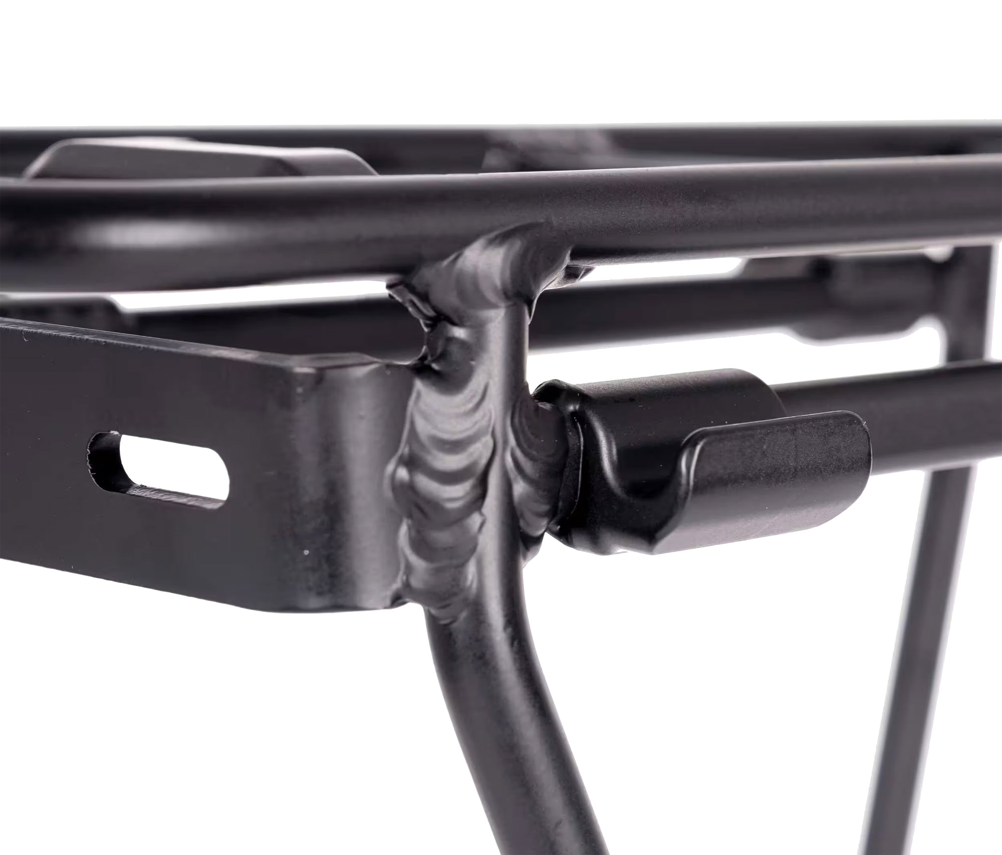 Der Träger überzeugt durch eine robuste, aber leichte Aluminium-Konstruktion, die selbst bei voller Beladung für klapperfreie Fahrten sorgt.