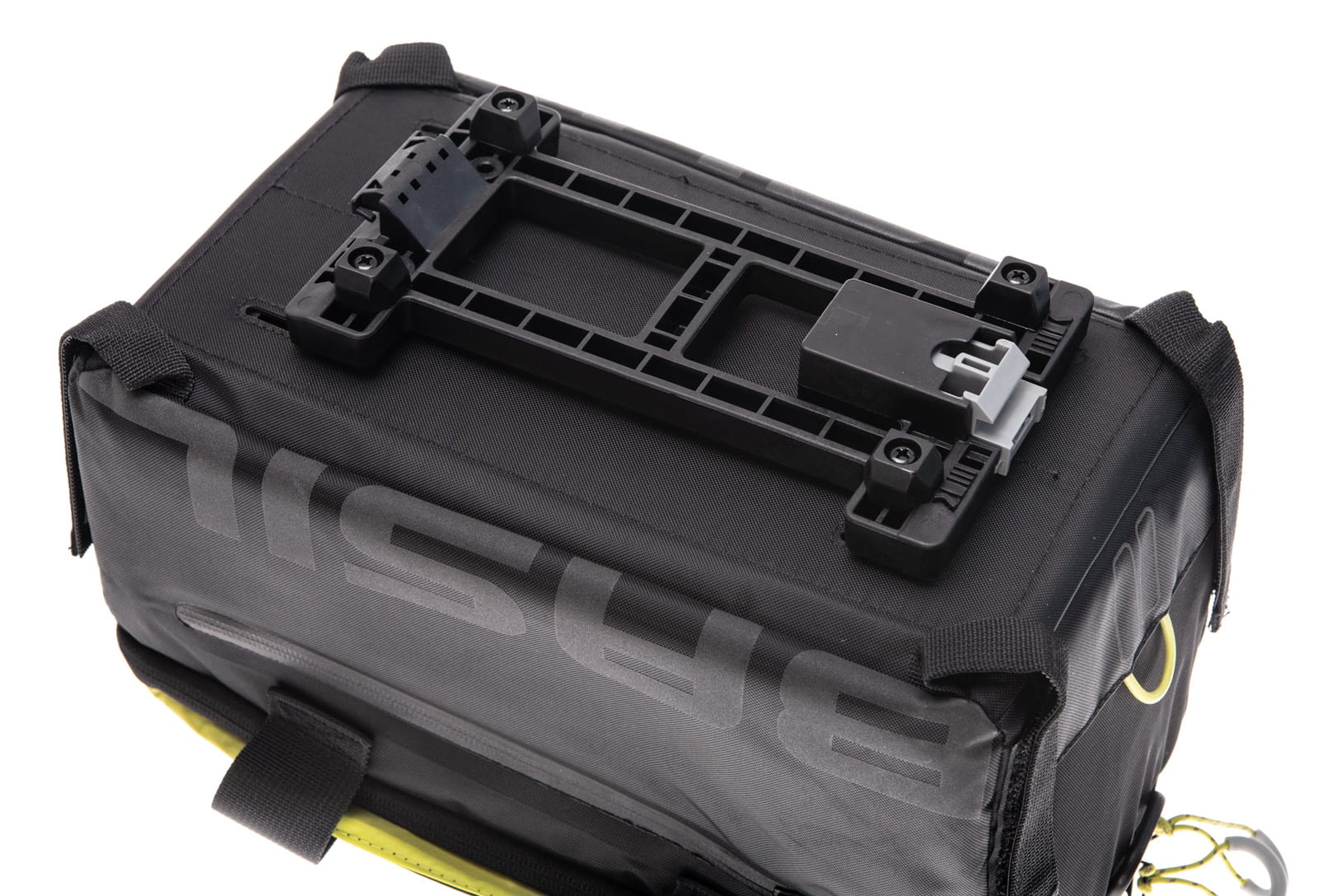 Die Basil Miles Fahrradtasche für MIK Gepäckträger kombiniert effizienten Stauraum und ein stabiles Gehäuse - was das Topcase zu einem unverzichtbaren Begleiter für Radfahrer macht. Das geräumige Hauptfach ist wie ein Trockensack aufgebaut und lässt sich aufrollen.