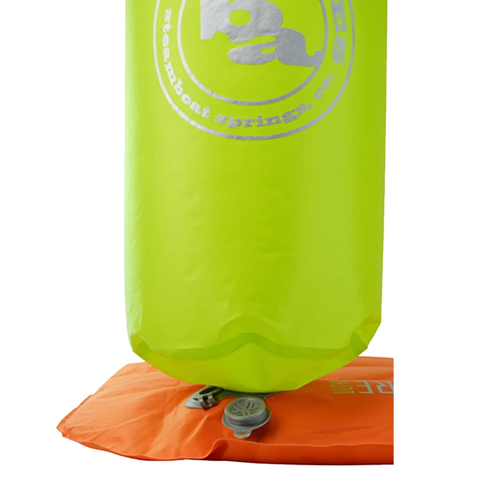Kurz durch die Luft geschwungen, füllt sich der Sack mit Luft und reduziert die Pumpzeit der Isomatte deutlich und verhindert, dass feuchte Atemluft in die Isomatte eindringt.