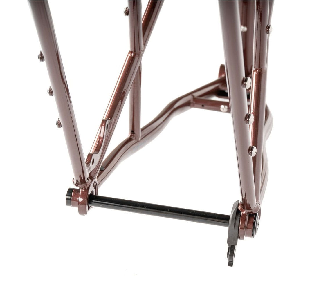 Mit seinem robusten 4130 CrMo Stahl und dem verstärkten Steuerrohrbereich ist der Rahmen darauf ausgelegt, auch schwere Lasten zuverlässig zu tragen. Der integrierte Heckträger ermöglicht den Transport von Gepäck oder sogar Kindersitzen, sodass du dein Bike genau nach deinen Bedürfnissen konfigurieren kannst.