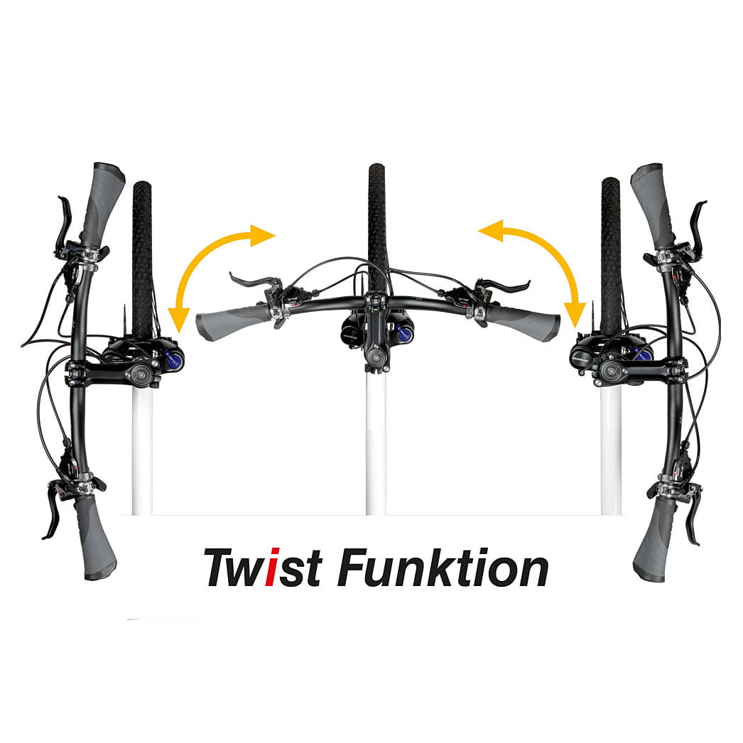 Der Stem Twist SDS Vorbau ist die perfekte, werkzeuglose Lösung, wenn sich das Fahrrad rasch in ein „Platzsparwunder“ verwandeln soll, etwa zum Transport im Fahrradabteil der Bahn, beim Abstellen im beengten Hausflur oder im Wohnmobil.