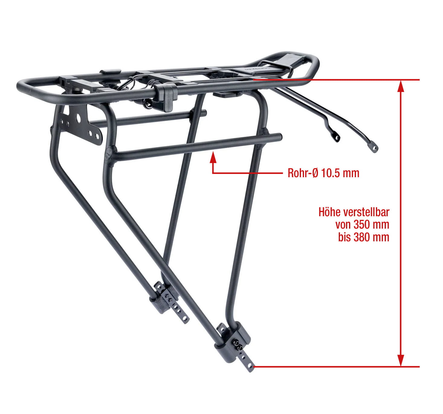 - Extra Einhängeebene erlaubt gleichzeitige Verwendung von Packtaschen und Korb