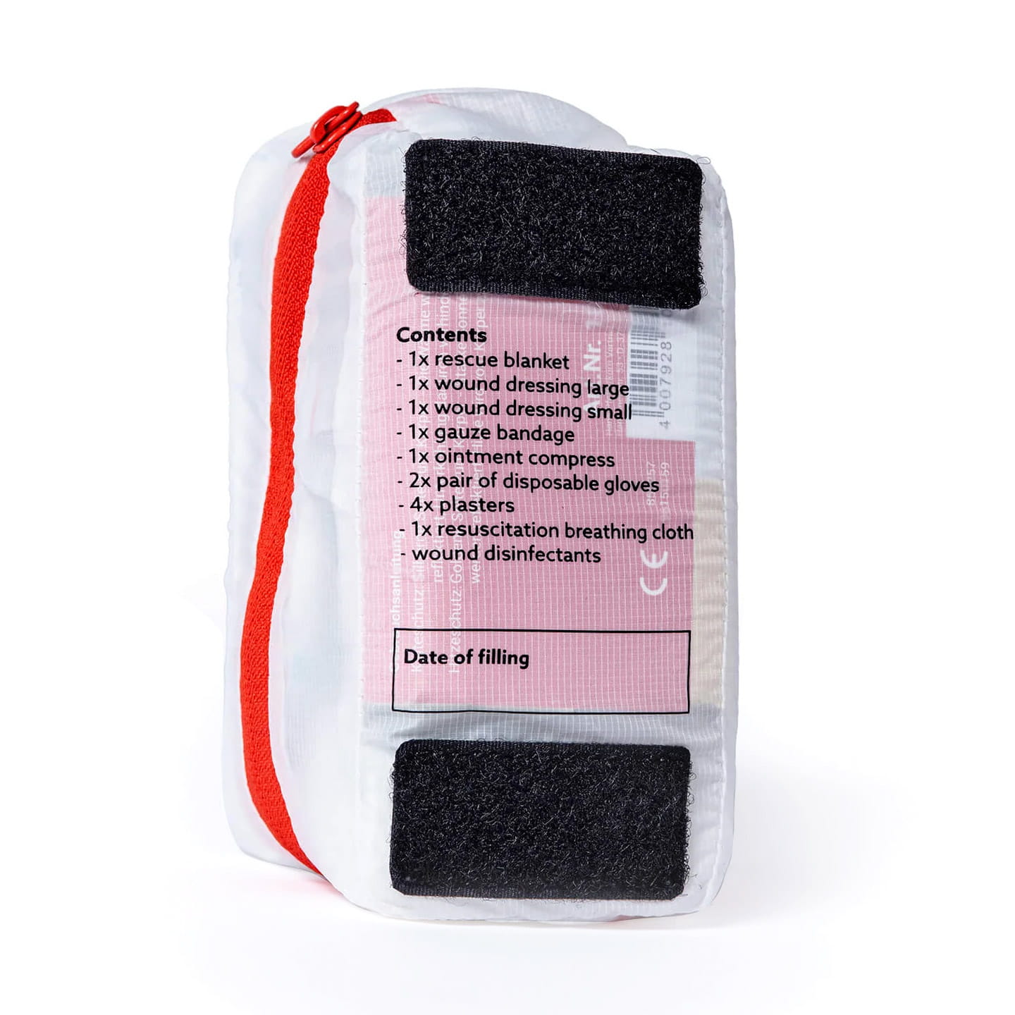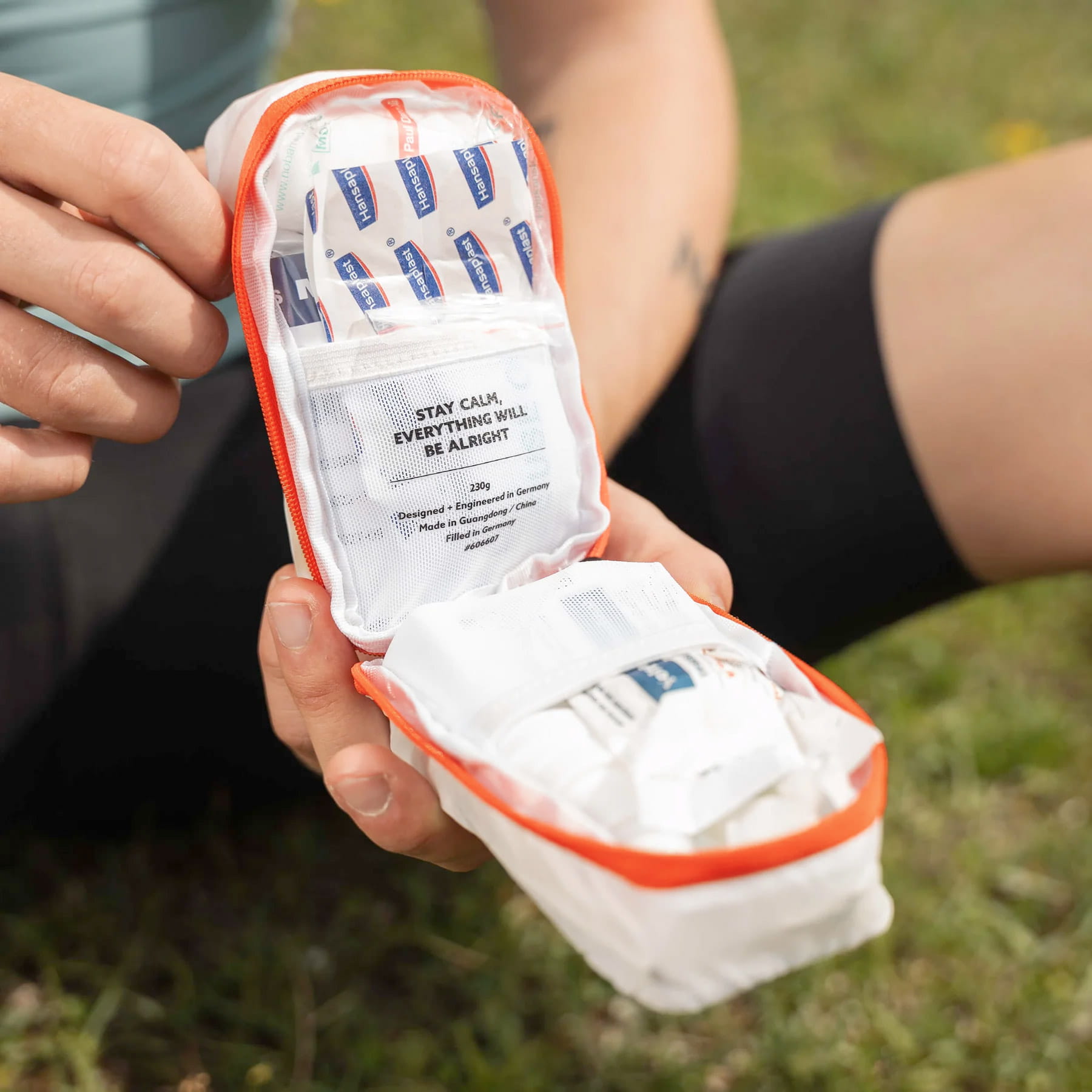 - Damit das Set im Notfall von Helfern schnell gefunden werden kann, wird ein Aufkleber für die Außenseite deiner Taschen, mitgeliefert.