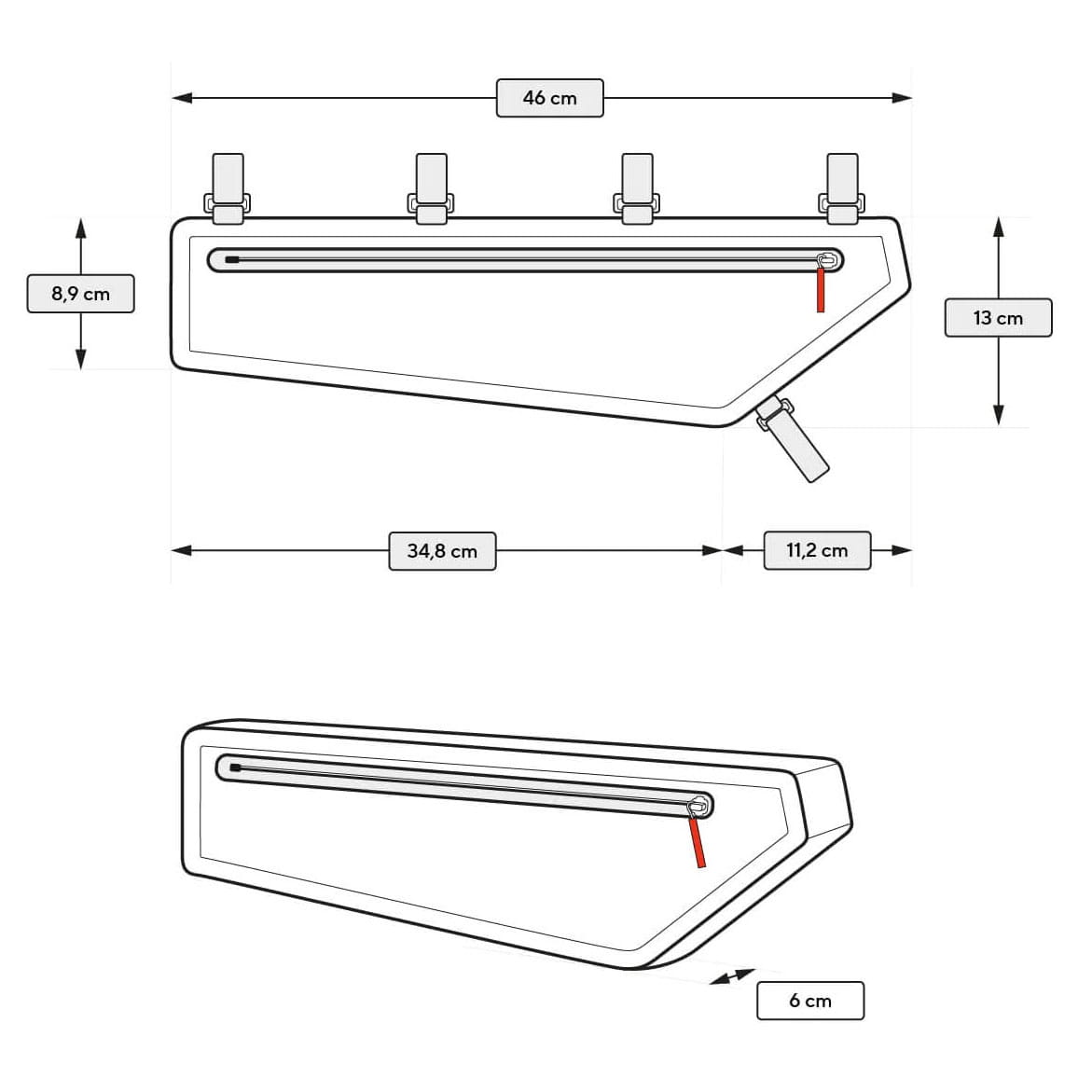 Die Cyclite Frame Bag XT / 02 ist die perfekte Lösung für sportliche Radfahrer, die auf langen Touren oder Bikepacking-Abenteuern zusätzlichen Stauraum benötigen. Mit einer Länge von 46 cm passt sie optimal in größere Rahmen und bietet dir ausreichend Platz für Werkzeug, Snacks, Regenkleidung oder eine Trinkblase. Dabei bleibt sie mit ihrem ultraleichten und aerodynamischen Design kaum spürbar und beeinflusst dein Fahrverhalten nicht.