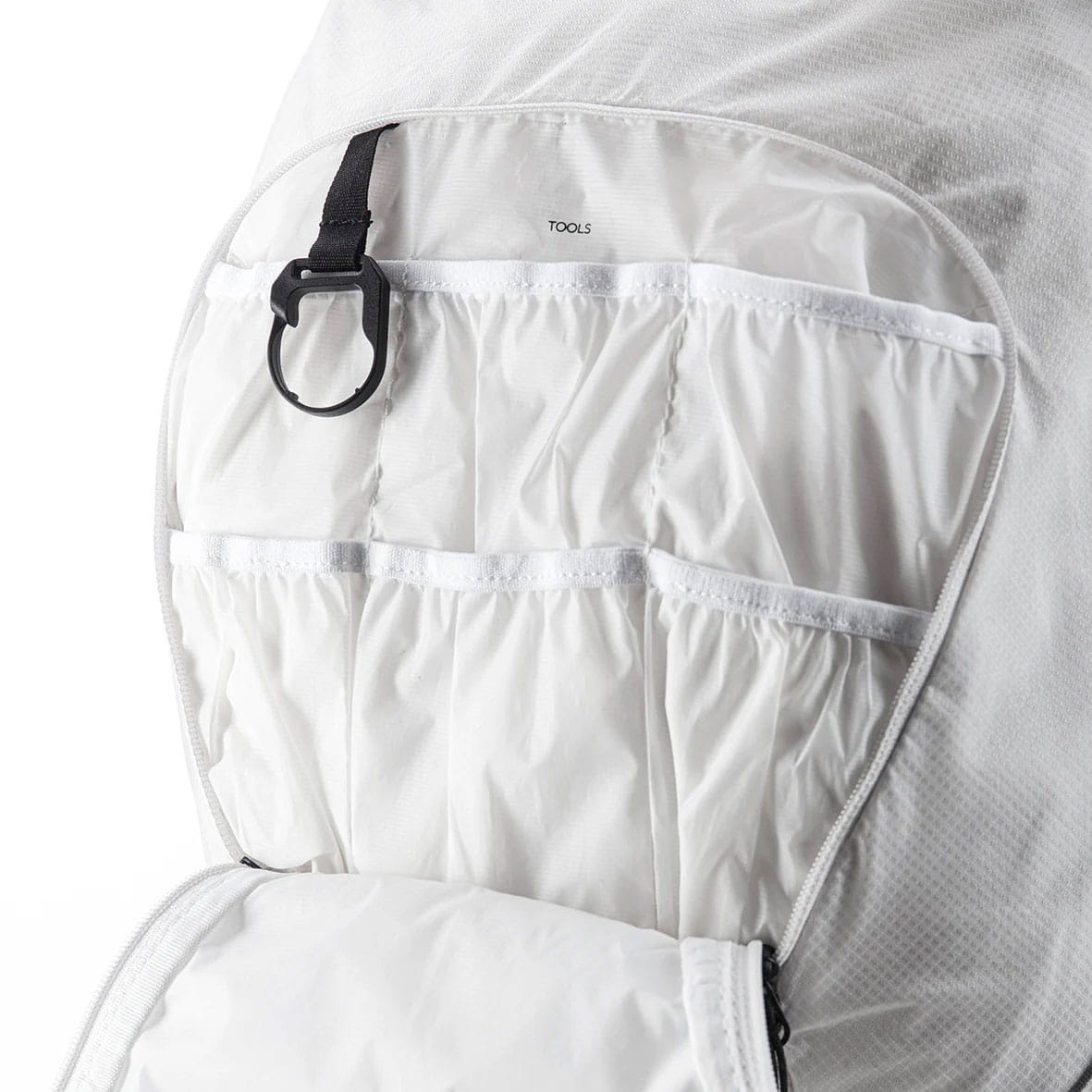 - Reißverschluss-Innentasche samt Schlüsselhaken sowie ein flaches Fach, z.B. für die Pumpe