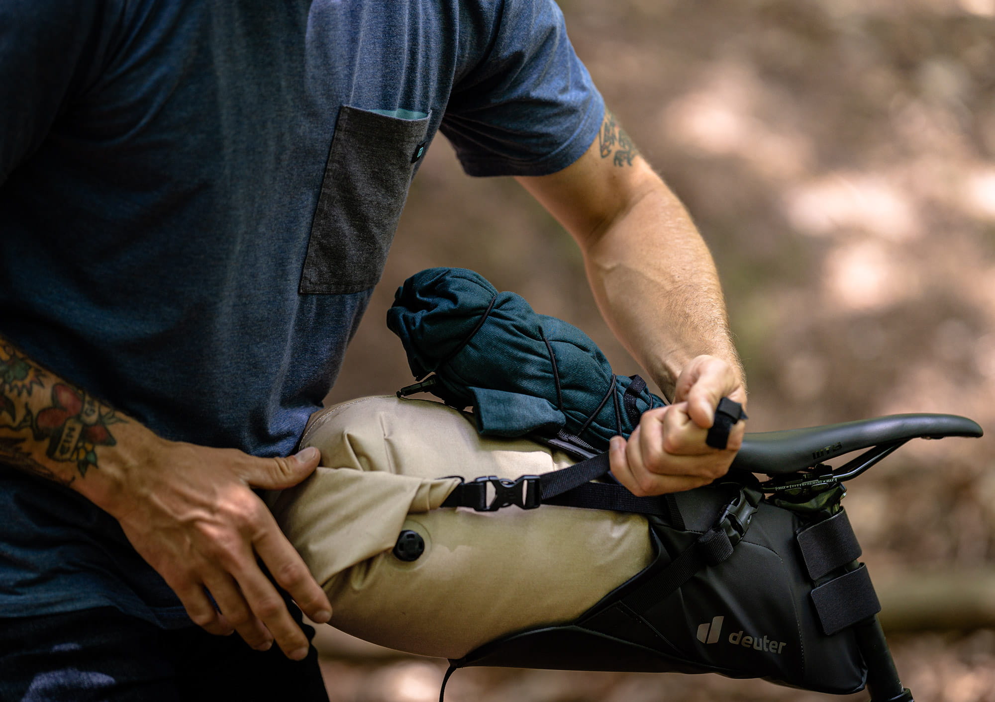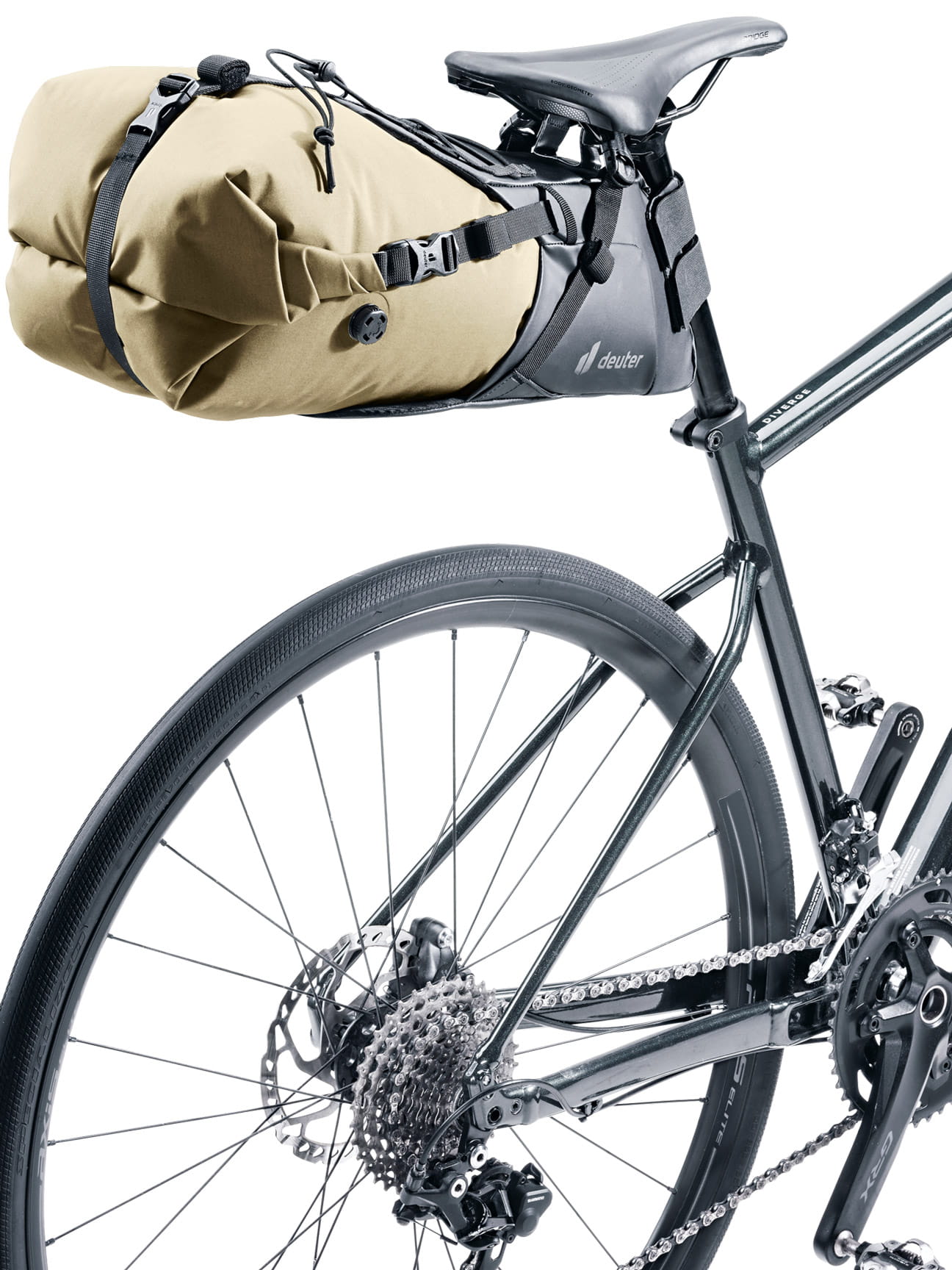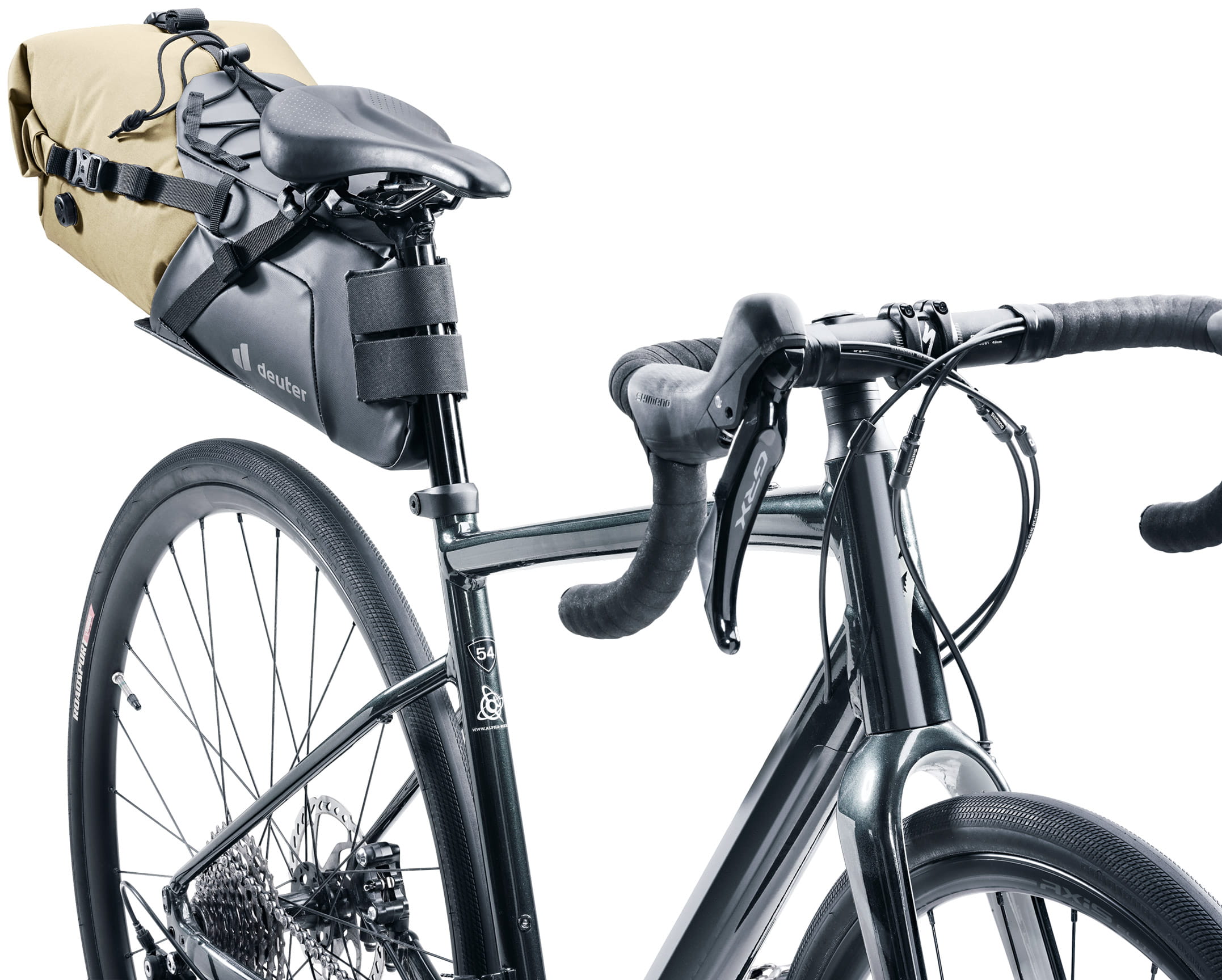 Die stabile deuter Cabezon SB 16 Satteltasche bestehend aus Holster und Drybag ist optimal für Globetrotter die ein flexibles System, für schnelles Be- und Entladen bei spontanen Zwischenstopps, suchen. Der leichte, wasserdichte Packsack mit Rollverschluss und Komprimierungsventil hält Ausrüstung und Kleidung zuverlässig bei Deiner Bikepacking Tour trocken.