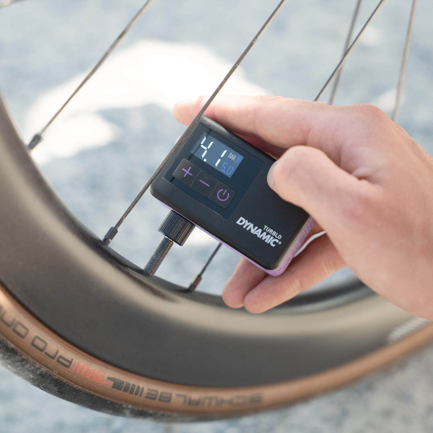 Die Dynamic Turblo ist deine kompakte, wiederverwendbare Alternative zu CO2-Kartuschen. Sie ist ideal für Radreisen, Bikepacking und schnelle Reifenreparaturen unterwegs. Mit digitalem Display, automatischer Abschaltung und geringem Gewicht bietet sie dir höchste Funktionalität auf kleinstem Raum – perfekt für alle, die unabhängig und flexibel bleiben wollen.