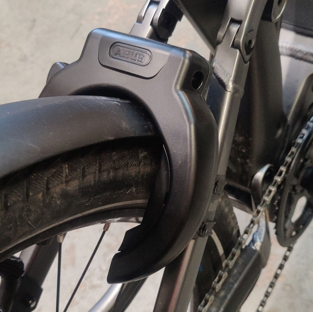 Das Rahmenschloss 4750 von ABUS mit extrem großem Raddurchlauf und zuverlässigem Schutz mit einem kurzen Handgriff.