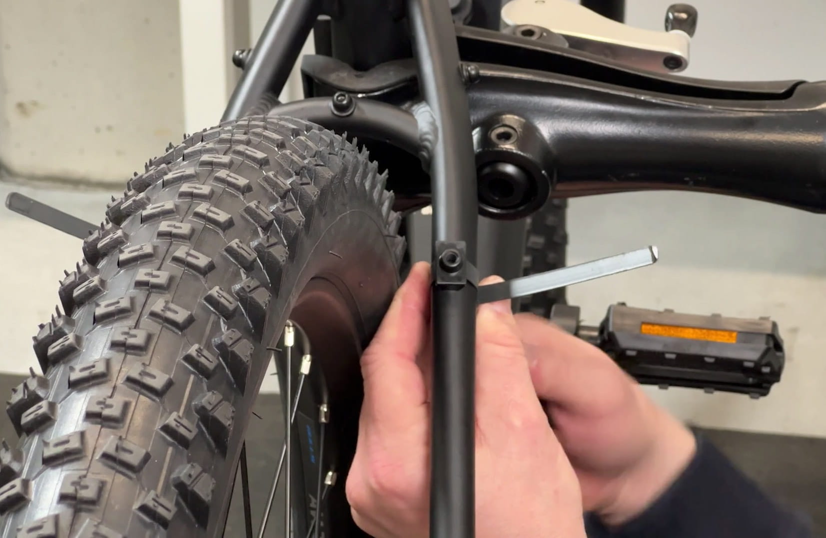 Dank beweglicher Schraubenaufnahme ist nur noch ein Schloss für alle gängigen Rahmen- und Reifenformate notwendig.