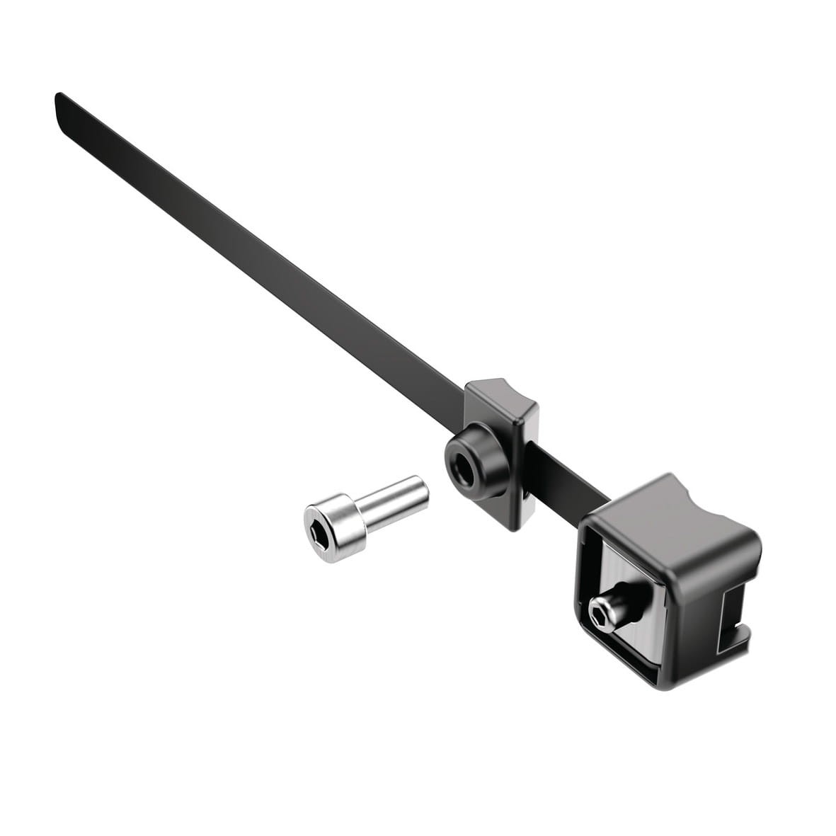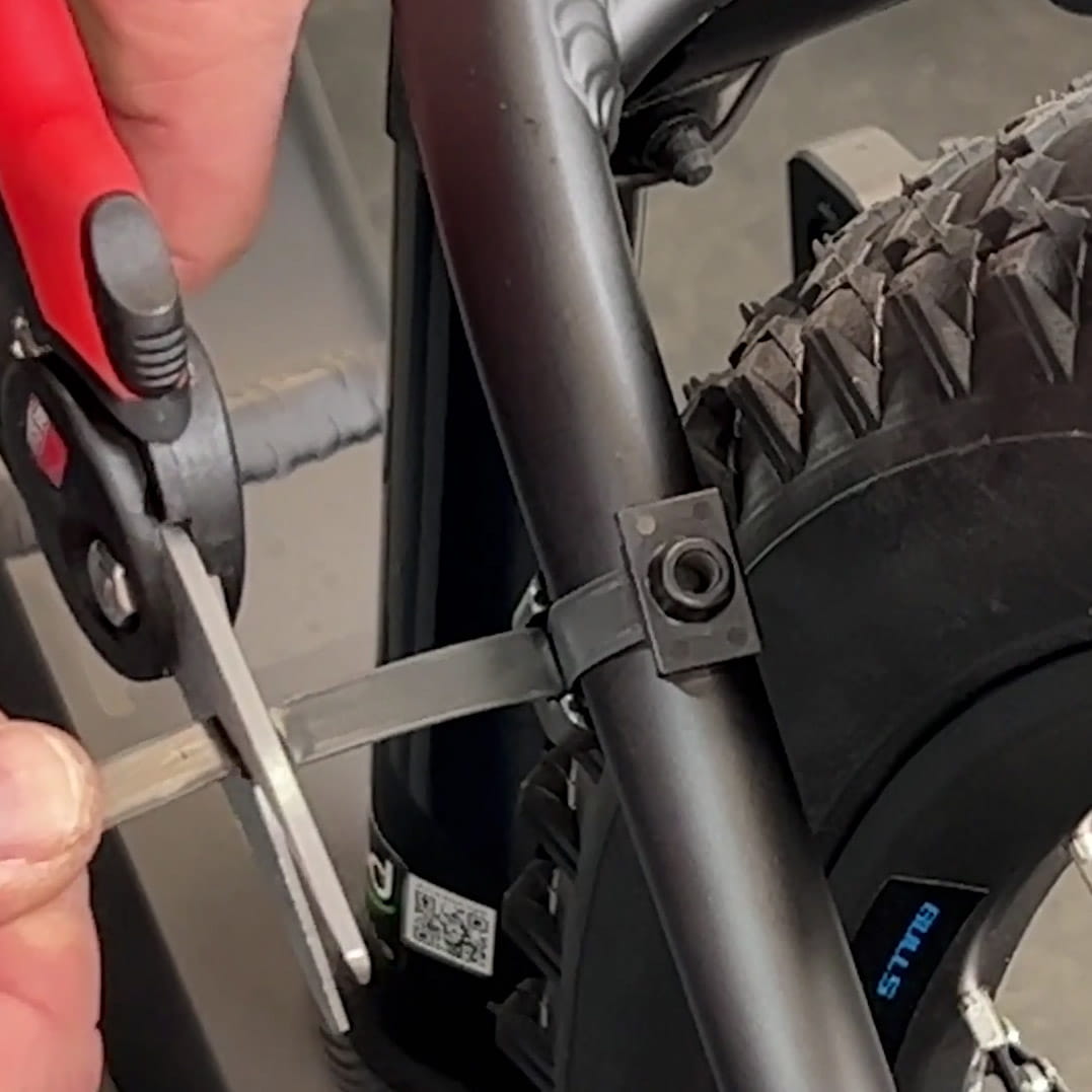 Mit diesem Spannband lassen sich Rahmenschlösser auch an Fahrradrahmen ohne Gewindeösen befestigen.