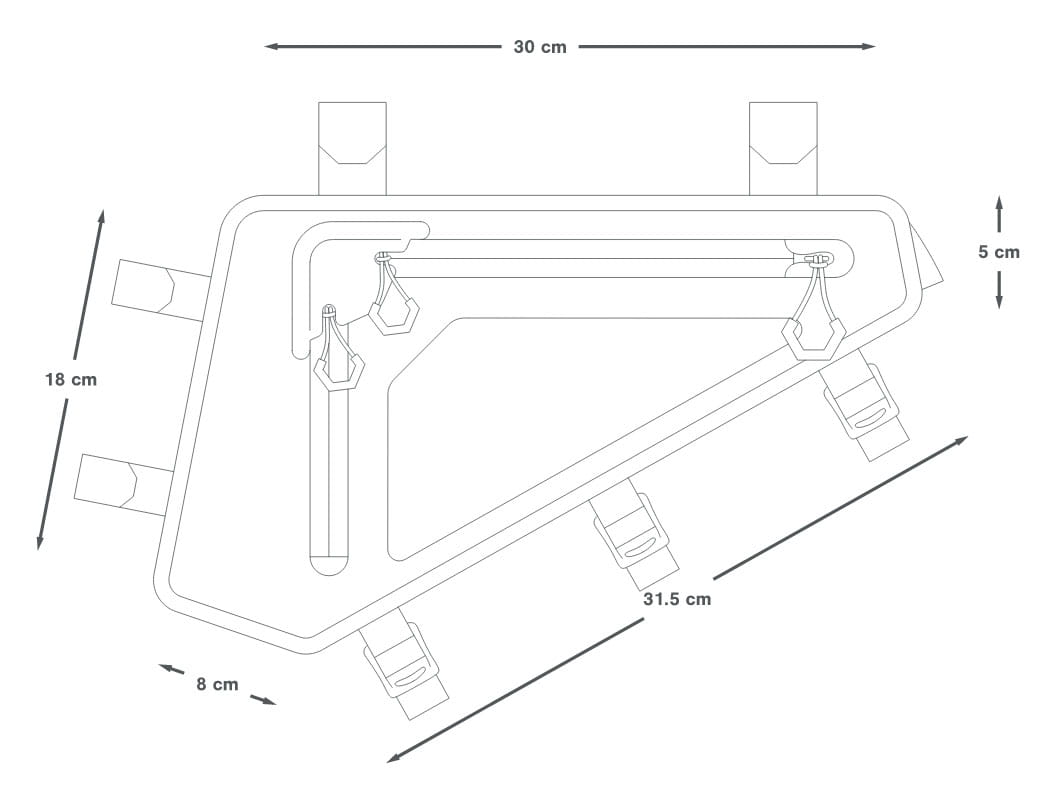 The Full Frame frame bag offers plenty of space for bulky items - from cooking utensils to heavy tools to a water bladder. Due to the low center of gravity, the bag has minimal impact on the handling of your bike.
