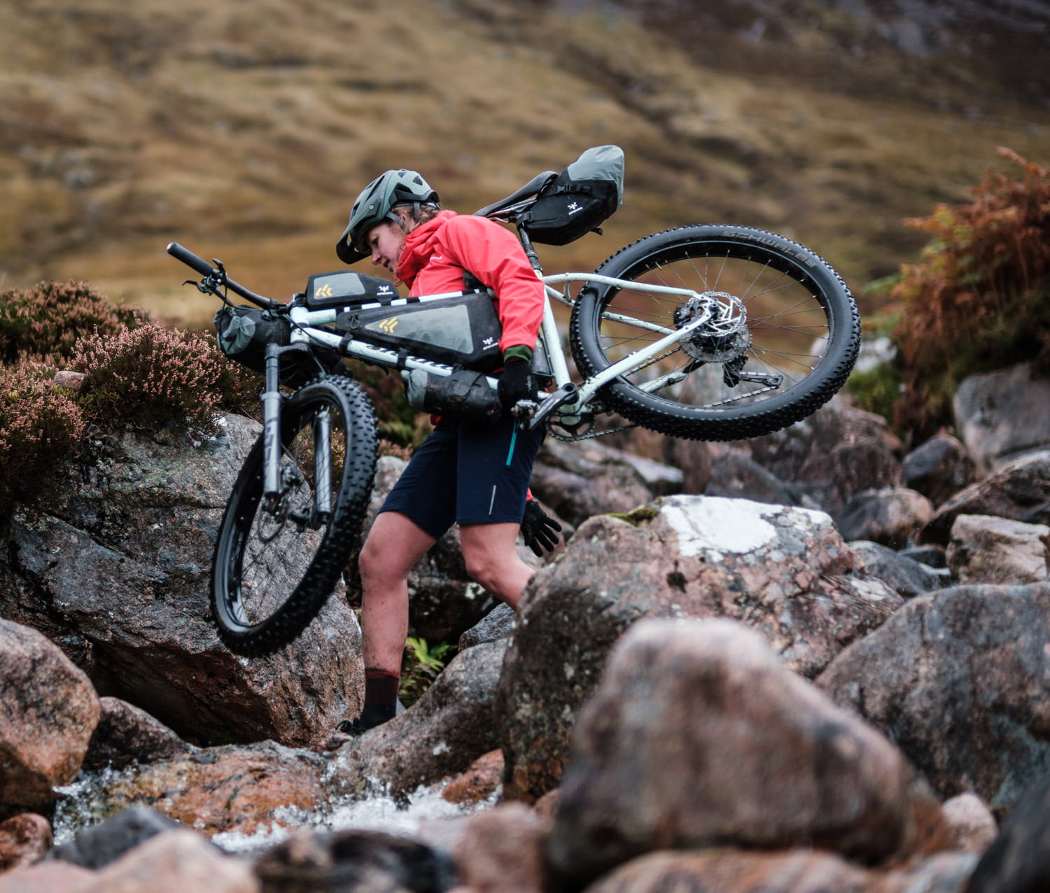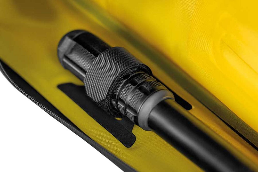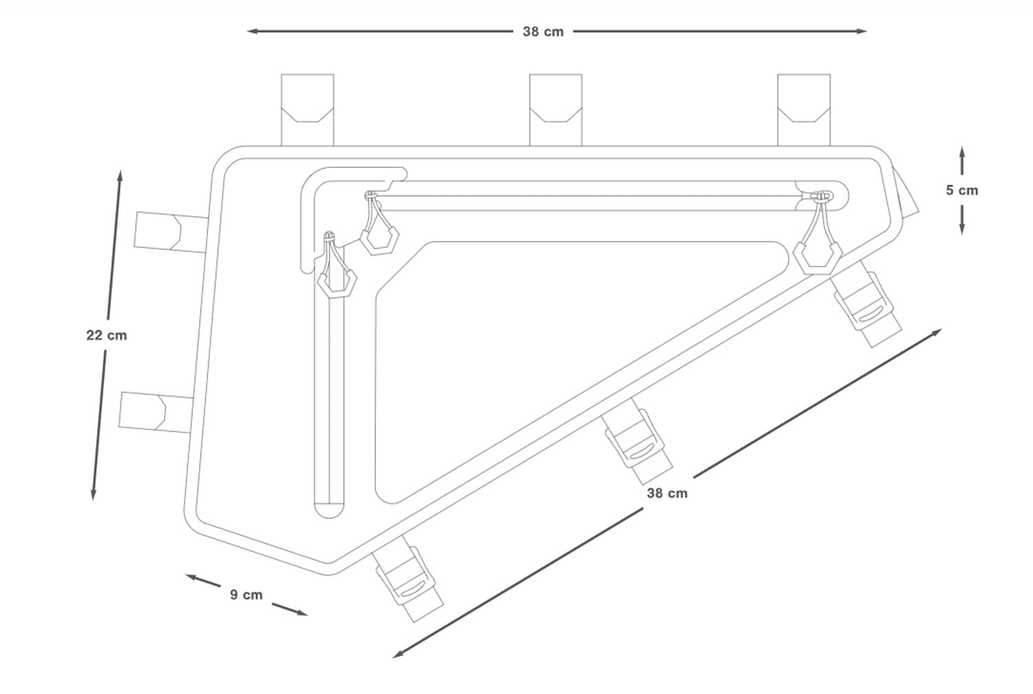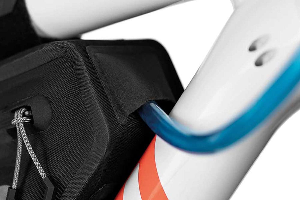 The Full Frame frame bag offers plenty of space for bulky items - from cooking utensils to heavy tools to a water bladder. Due to the low center of gravity, the bag has minimal impact on the handling of your bike.