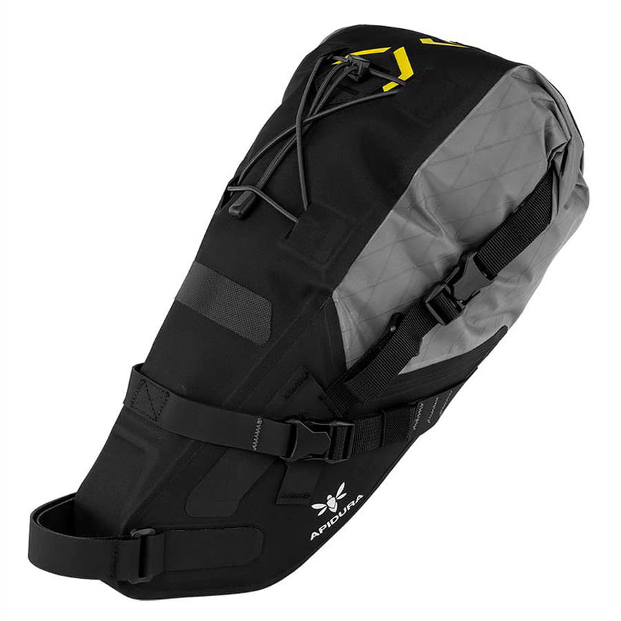 The Apidura Backcountry Saddle Pack is the ultimate bikepacking bag for the wilderness. Designed to carry lightweight, compressible gear when riding off-road, the mountain bike saddle bag features a spacious compartment under the saddle. The three-point attachment system and optional dropper post adapter ensure a secure, wobble-free fit.