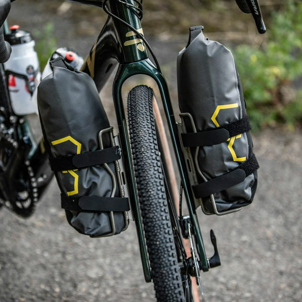The Expedition Cargo Cage Pack is designed to attach to a fork cage such as the Apidura Cargo Cage. The fork bag is ideal for storing compressible items such as sleeping gear and extra clothing, but also bulkier items such as cooking utensils or additional food and drinks, the 3 liter bag is extremely adaptable.