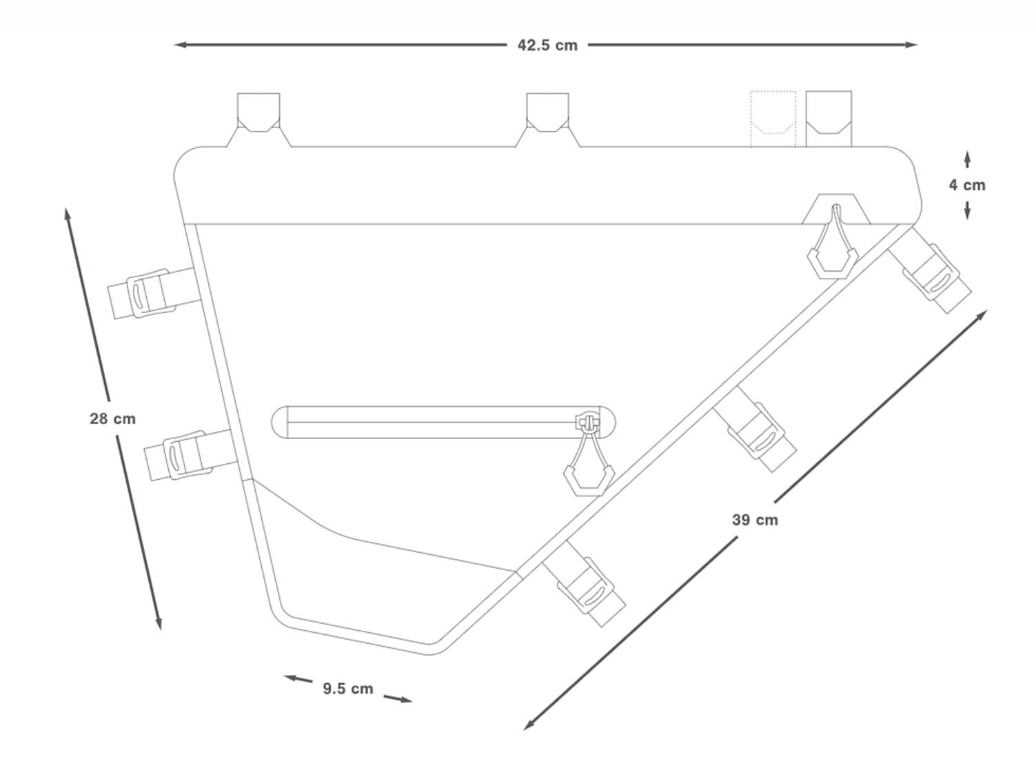 The Apidura Full Frame Pack is ideal for transporting compact foods (such as spaghetti) that are needed on distant trips, but also hydration bladders, tent poles, tools, electrical devices, spare parts or a first aid kit. In general, heavy objects are recommended here, as the weight stored here has no influence on the handling of the bike.