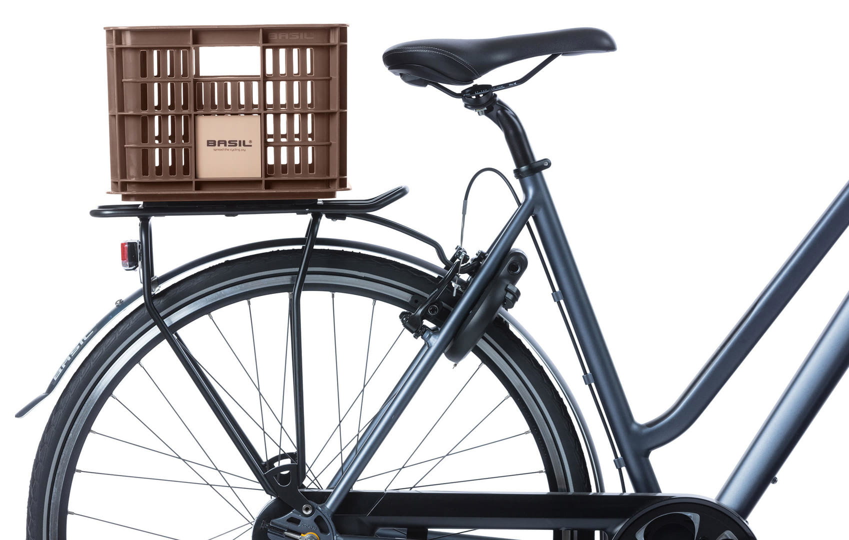 Die Basil Crate Box bietet dir ausreichend Platz für Lebensmittel, Schultaschen, Kleidungsstücke oder alles, was du gerade transportieren möchtest. Die Kiste ist mit verschiedenen Gepäckträger-Klick-Systemen am Markt kompatibel. Der Boden ist so verstärkt, dass du verschiedene Adapterplatten (nicht im Lieferumfang) am Boden montieren kannst.
