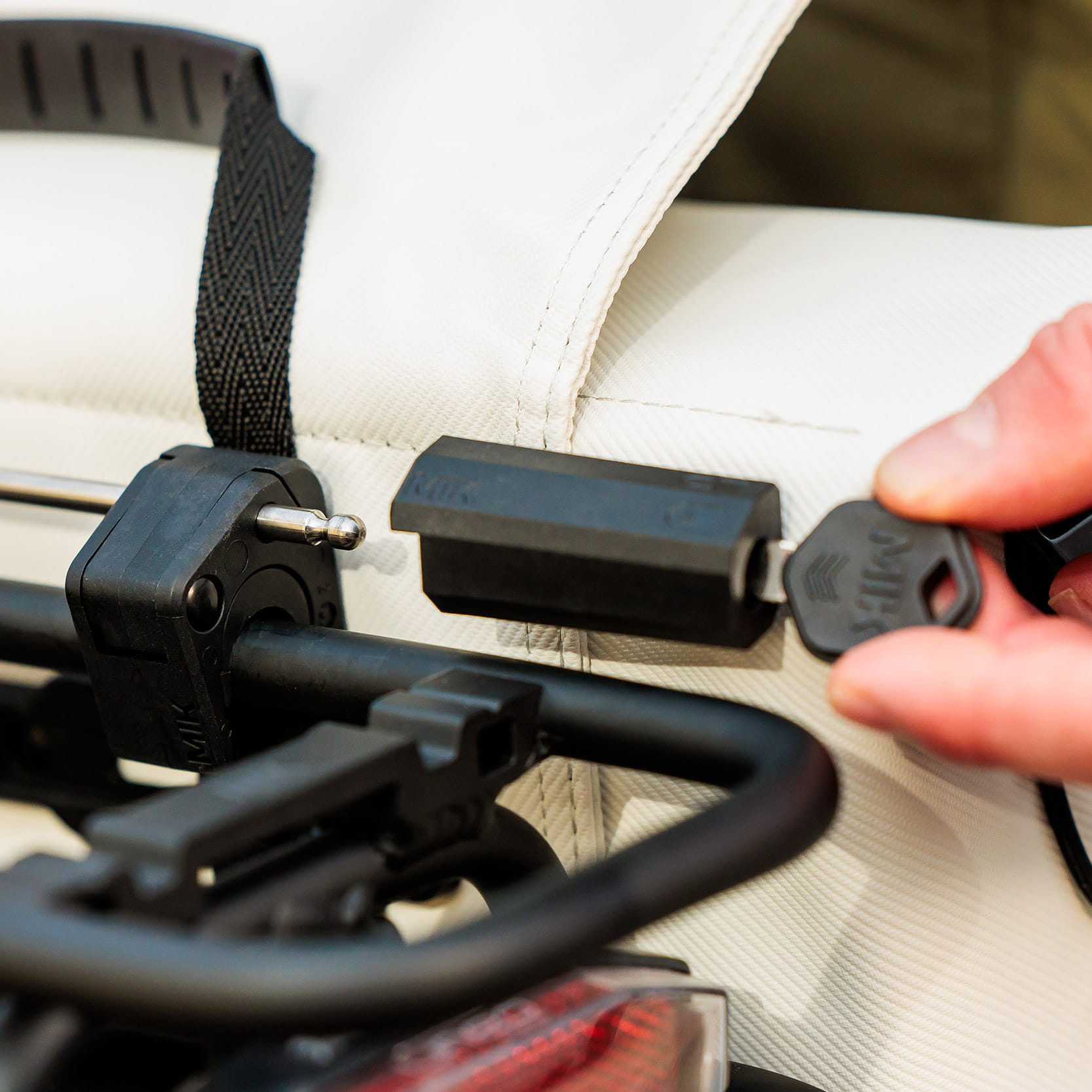 Mit dem Basil MIK Hooks Lock für MIK Hooks System kannst du deine Fahrradtasche noch sicherer am Gepäckträger befestigen. Einfach den Pin durch das MIK Hooks-System schieben und mit dem mitgelieferten Schloss abschließen. So verhinderst du, dass die Tasche einfach entwendet wird – ideal, wenn du dein Fahrrad kurz unbeaufsichtigt stehen lässt.