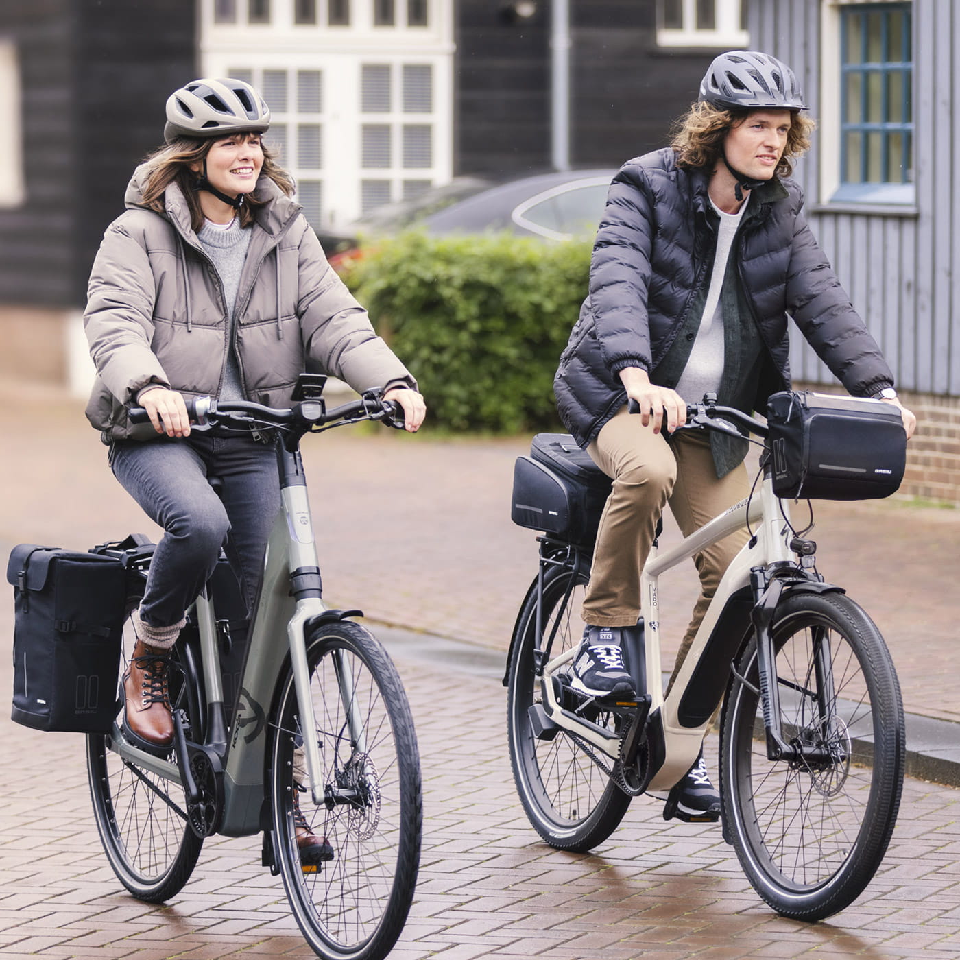 Wenn du eine Pause einlegst, lässt sich die Tasche dank des praktischen Schulterriemens mühelos mitnehmen. Die schlichte schwarze Farbe und die Reflektoren sorgen dafür, dass du auch im Verkehr gut sichtbar bist.
