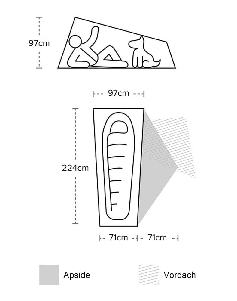 - Interior area 1.9 m² (224 x 97/71 cm)