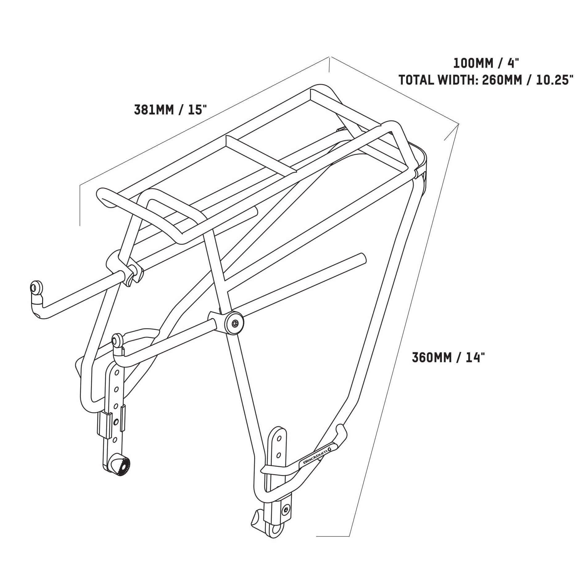 Ein schmales Profil an der Oberseite hält das Gewicht der Packtaschen nahe an der Mitte für eine bessere Balance. Das Blackburn Fit System gewährleistet eine einfache Montage an einer Vielzahl von Rahmen und Rädern. Der Gepäckträger ist mit Scheibenbremsen kompatibel, und er funktioniert mit den meisten Brems- oder Rahmenhalterungen.