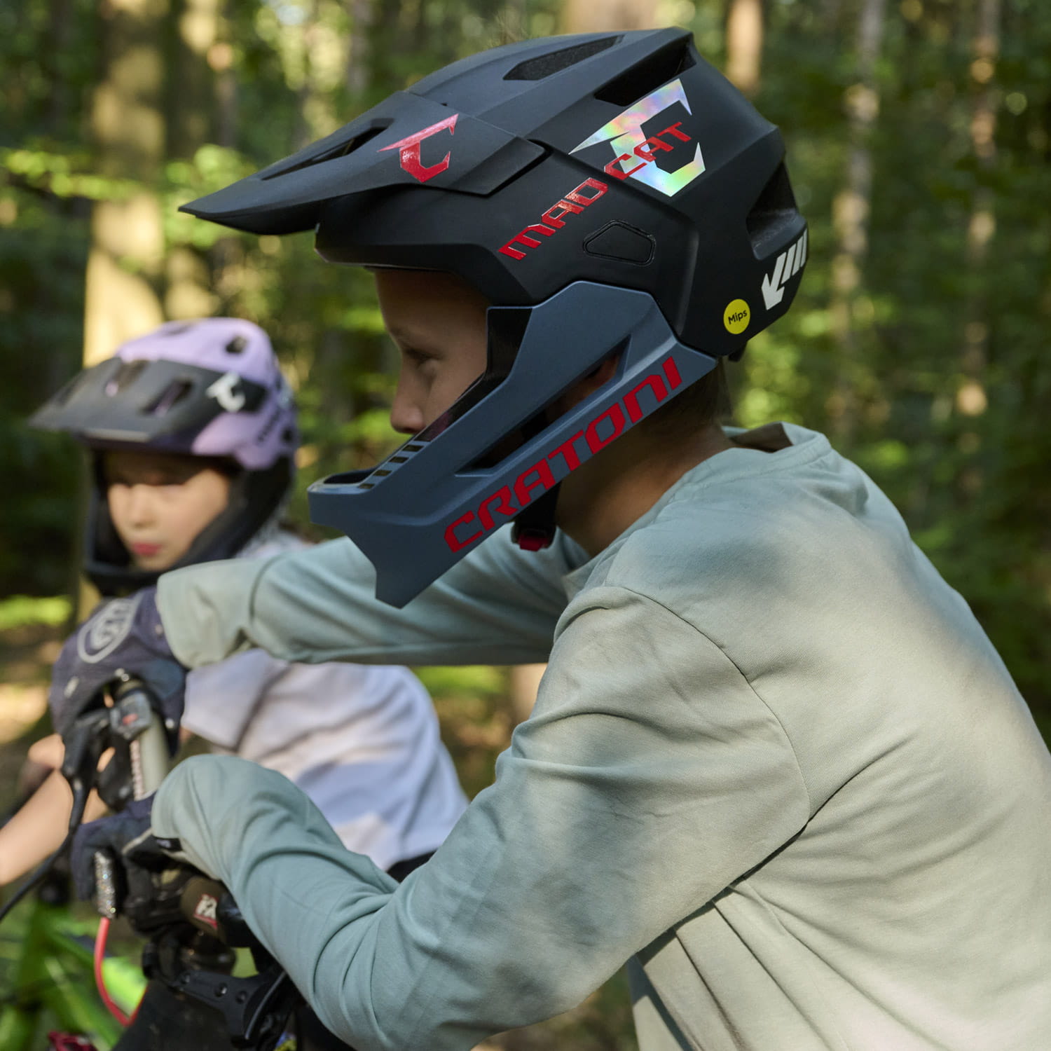 Mit dem Cratoni MadCat MIPS Fullface-Helm kannst du richtig Gas geben, anspruchsvolle Trails meistern und deine Limits neu definieren. Der MadCat ist nicht einfach ein Upgrade – er markiert den Beginn einer neuen Helm-Generation. Entwickelt für junge Rider, die keine Kompromisse eingehen.