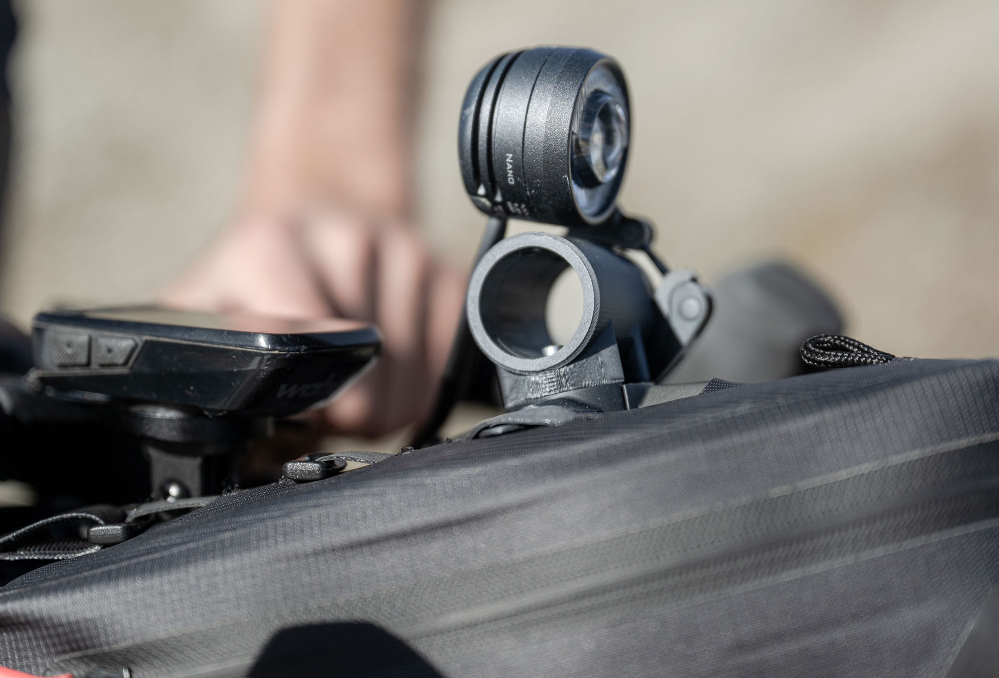 Die Cyclist Aero Mount / 02 Halterung ist eine leichte und praktische Lösung, um Licht- oder GPS-Geräte an der Handle Bar Aero Bag zu befestigen. Die Halterung lässt sich einfach, schnell und stabil an den Laschen auf der Oberseite der Tasche anbringen. Es fungiert als „Lenkerersatz“ und ermöglicht die Befestigung der meisten kompakten Frontlampen oder Fahrradcomputer / GPS-Geräte sowie als Adapter für Smartphone- und GPS-Halterungen. Damit wird die Platzproblematik bei der Nutzung der Handlebar Aero Bar Bag, insbesondere bei Aufliegern, gelöst. Mit einem Gewicht von nur 29 Gramm ist die Aero Mount Halterung ultraleicht.