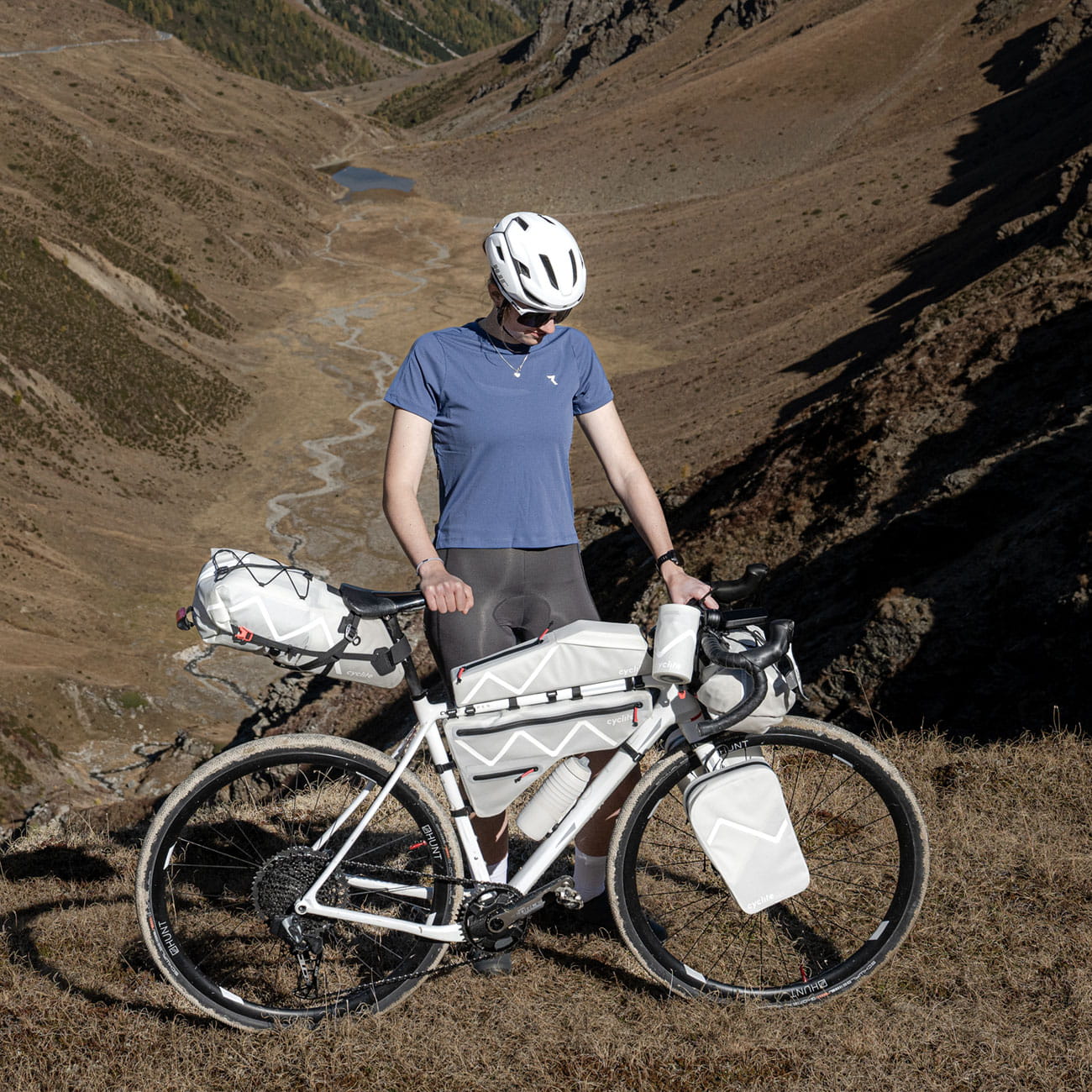 Die Cyclite Fork Bag / 01 eine Gabeltasche für alle Bikepackerinnen und Bikepacker, die zusätzliches Volumen außerhalb des Rahmens benötigen, dabei aber nicht auf Aerodynamik verzichten möchten. Ihr besonderes, flach keilförmig zulaufendes Design sorgt dafür, dass sie besonders windschnittig und aerodynamisch bleibt. In Kombination mit einem tiefen Schwerpunkt bleibt das Fahrgefühl ausgewogen und natürlich. Eine stabile Innenstruktur verhindert ein Ausbeulen – selbst bei voller Ausnutzung des 3,1-Liter-Volumens.