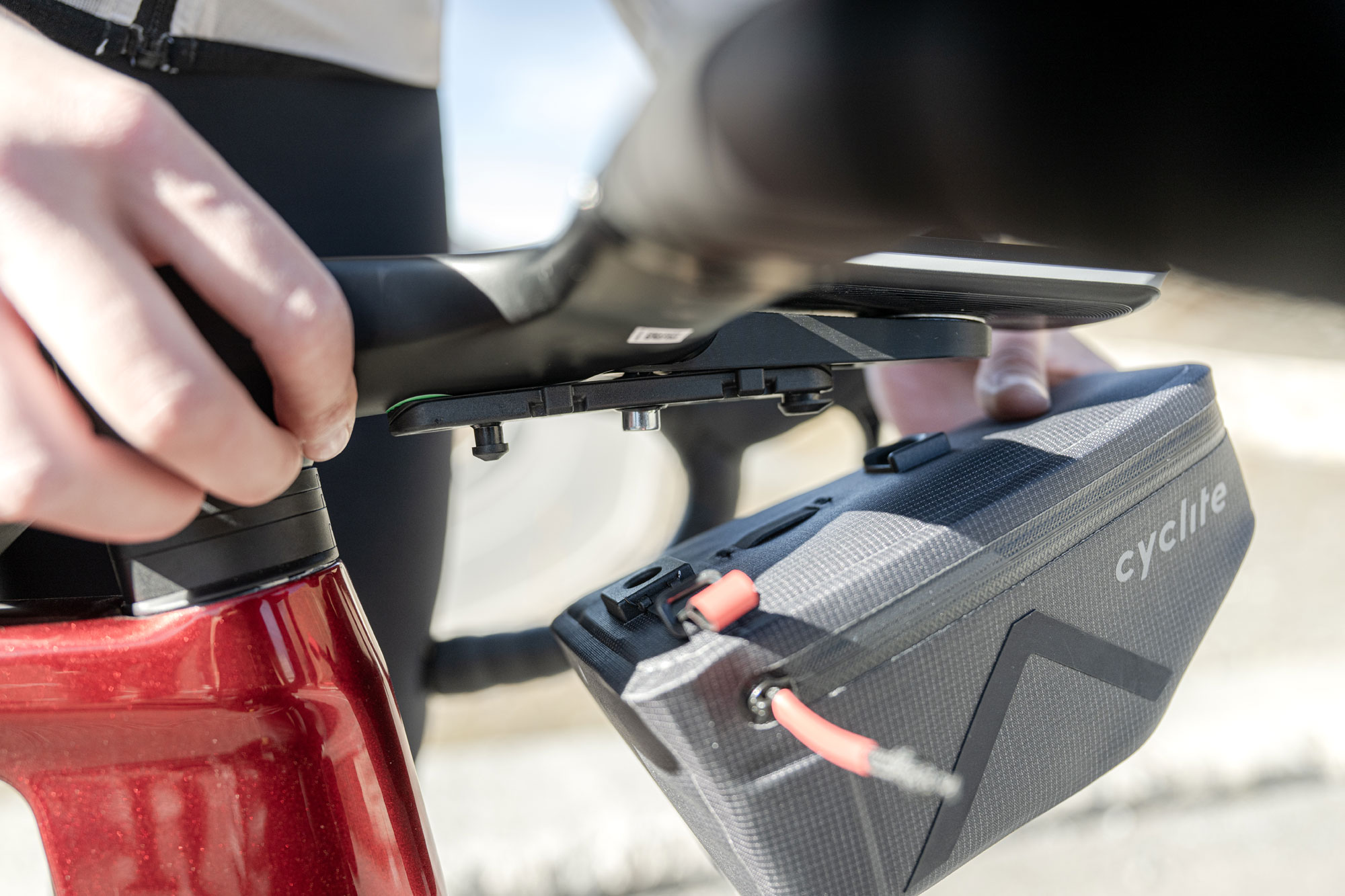 Die Cyclite Handle Bar Bag Nano / 01 lässt sich unter kompatiblen Aero-Cockpits oder Computer-Mounts mit GoPro-Aufnahme schrauben. Mit dem separat erhältlichen Nano Handle Bar Mount kann sie an allen Rundlenkern mit 31,8 mm Durchmesser befestigt werden.