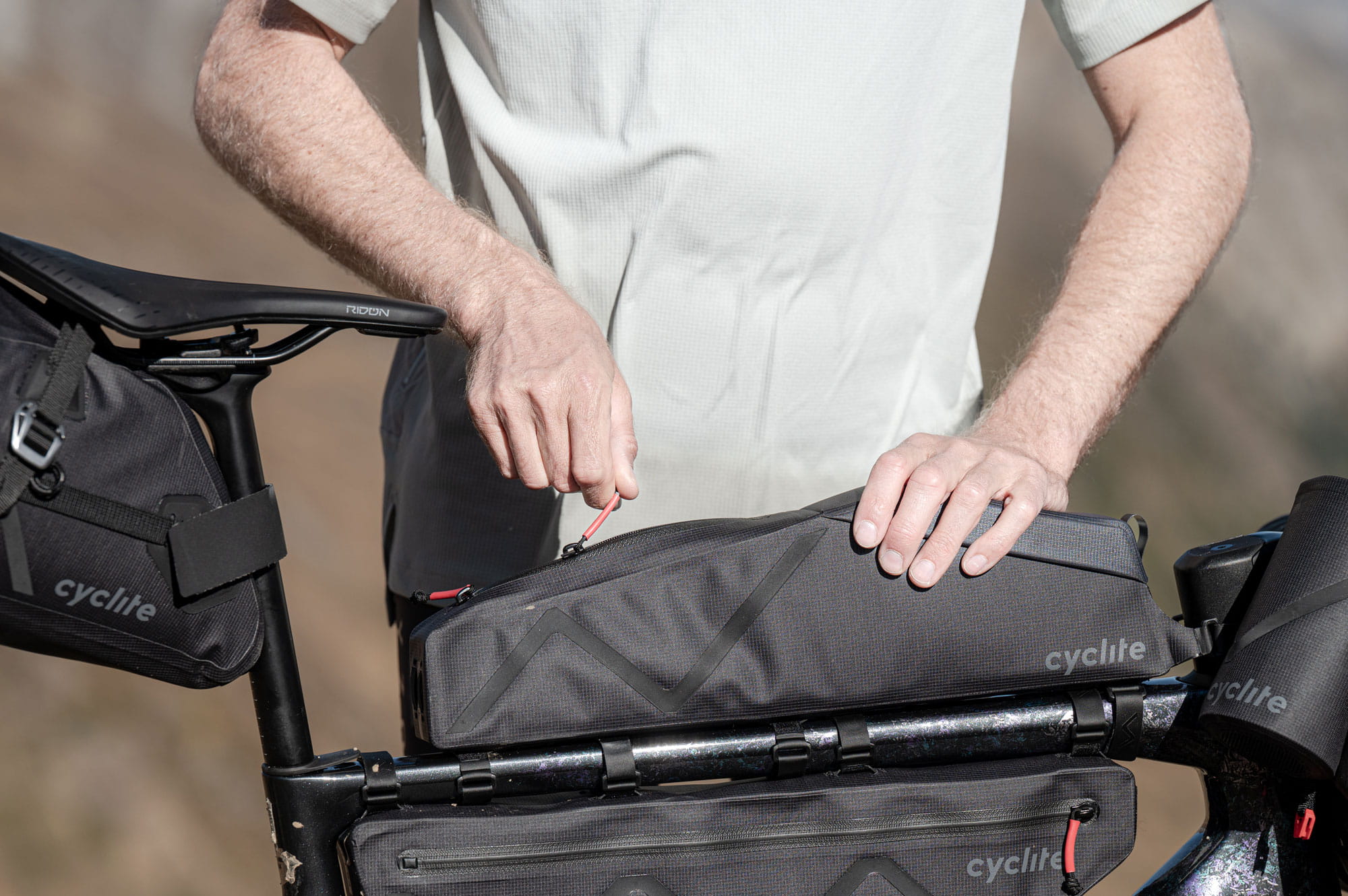 Die Cyclite Top Tube Bag Large / 02 Oberrohrtasche ist mit 2,2 Litern Volumen auf dem Oberrohr die Lösung für alle diejenigen, die längere Zeit unterwegs sind, in ihrem Rahmen keinen Platz für eine Frame Bag haben oder die sich den "Luxus" von mehr Stauraum mit direktem Zugriff während der Fahrt wünschen. Spare Energie, komme weiter, behalte die Dynamik Deines Rads und maximiere Dein Fahrerlebnis! Die Bikepacking-Taschen von Cyclite sind der Konkurrenz weit voraus!