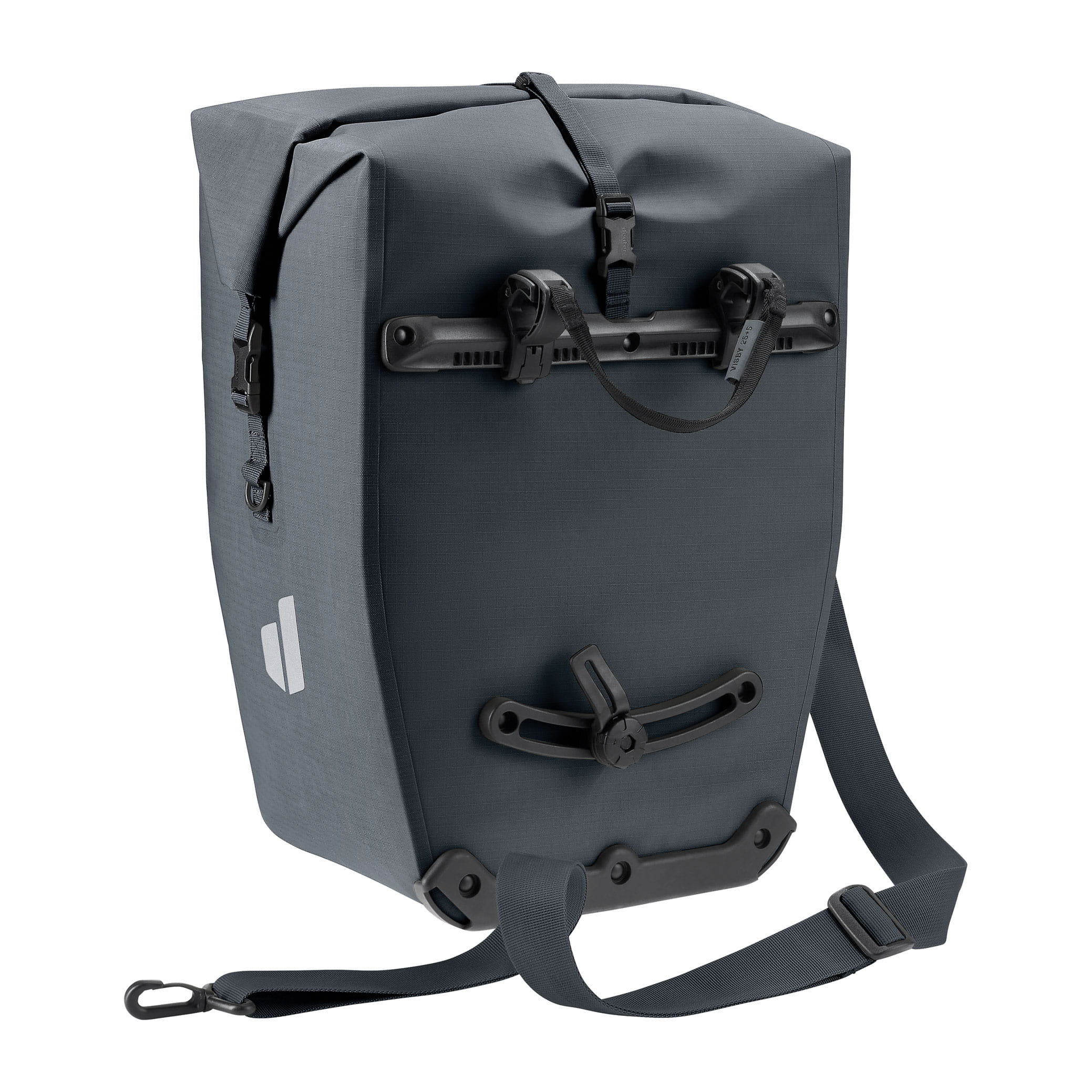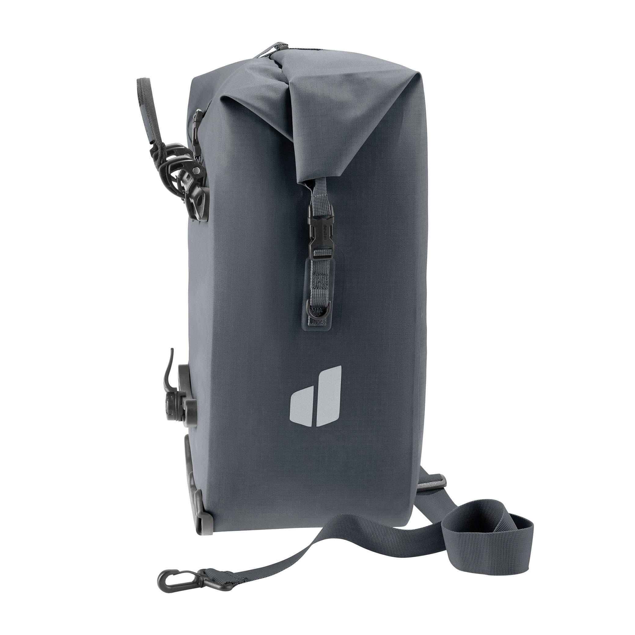 The Deuter Visby rear pannier is a versatile, waterproof single bag designed for use on the bike or in everyday life. It can be comfortably attached to the rear rack or used as a shoulder bag thanks to the removable shoulder strap. The durable, waterproof material reliably protects against rain and splash water, making it the ideal companion for commuters, tours, and daily use.