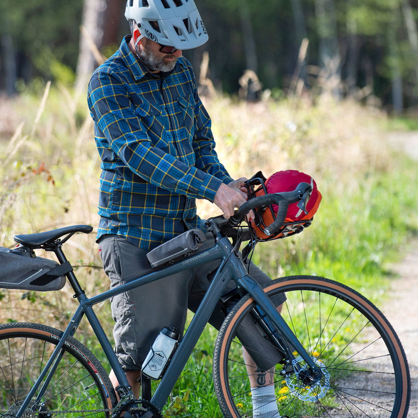 Die Montage der Klickfix-Halterung war etwas fummelig, man muss außerdem Vorbaubreite sowie die Form und die Verjüngung des Lenkers berücksichtigen. An einem MTB Lenker der erst etwas Forwardsweep und dann Backsweep hat, ließ sich der Träger nicht gut montieren. Und wenn man noch mit Vorbau und Lenker herumexperimentiert, ist das System etwas unpraktisch. Außerdem verträgt sich der Träger nicht ganz so gut mit einer am Lenker montierten Lampe, aber auch hierfür habe ich eine Lösung gefunden. Das mitgelieferte Gurtband nutze ich nicht. In der Halterung wackelt der Träger ganz leicht, da bin ich gespannt, ob das durch Verschleiß schlimmer wird, und die Halterung irgendwann ausgetauscht werden muss. Ansonsten ist der Träger aber top. Bremsleitungen und Schaltzüge haben ausreichend Platz, es muss nichts geknickt werden. Er hat jetzt schon über 1000km auf dem MTB (Offroad) mit 13l Packsack überstanden, u.a. auch in den Alpen. Bei der An-/Abreise mit der Bahn hat er sich als besonders praktisch herausgestellt. Einfach den Träger samt Tasche ein- bzw. ausklicken, das macht es so viel einfacher das Rad in die verschiedensten Aufhängungen in den Zügen zu heben.
