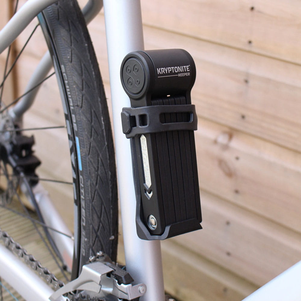 Das kompakte Kryptonite Keeper Mini Faltschloss ist ideal für schnelle Stopps. Es bietet ein perfektes Verhältnis von Sicherheit, Gewicht und Funktionalität. Die Rahmenhalterung und das platzsparende Faltmaß ermöglichen einen problemlosen Transport am Fahrrad. Ein Kunststoffüberzug an den Schlossgliedern schützt den Lack vor Beschädigungen.