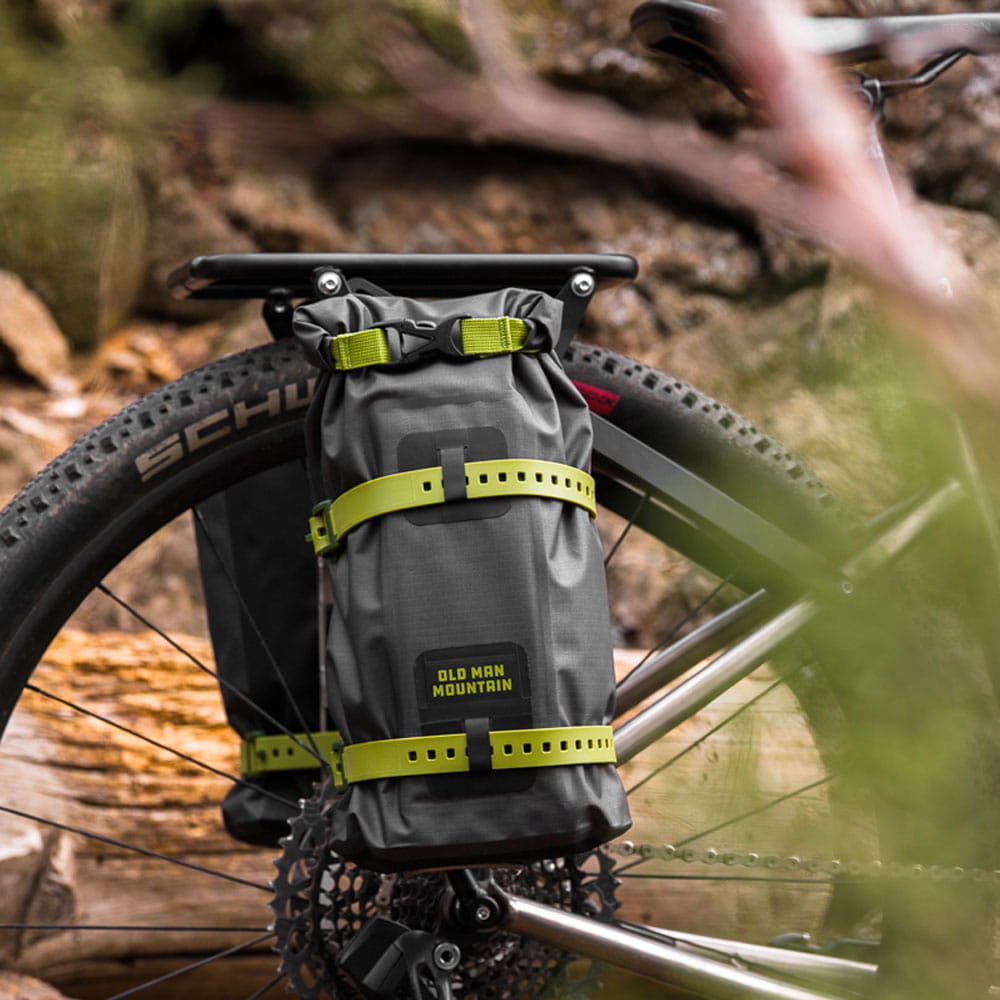 Whether it's sunny or rainy – your gear stays completely dry and protected in the 100% waterproof Old Man Mountain Dry Bag made of TPU fabric with welded seams and Hypalon reinforcements! The dry bag is specially designed for minimalist bikepacking, ideal for those who value lightweight gear and easy attachment to a rack.
