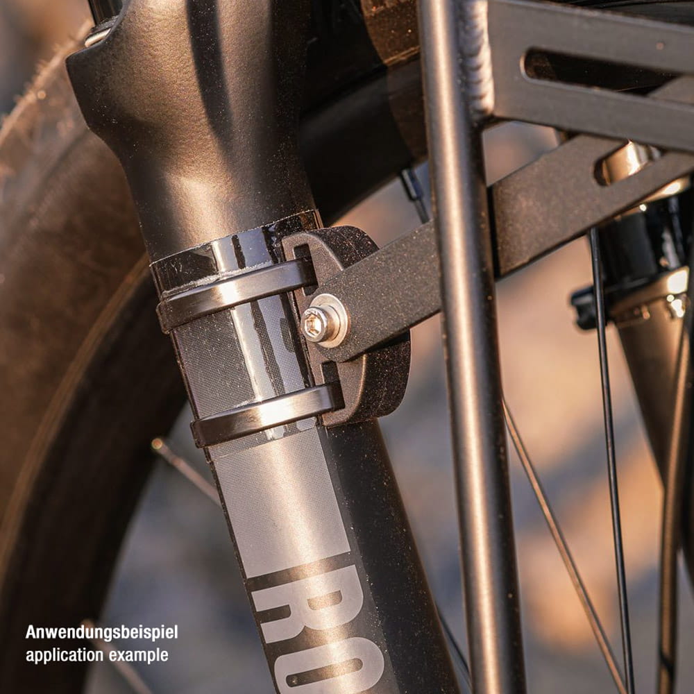 Das Zusatz Befestigungskit für die Achs Montage lässt sich super einfach montieren und der Gepäckträger sitzt sehr stabil. Meiner Meinung nach besser als Gepäckträger die sich nur um die Gabel schnallen lassen. (hier ist von richtigen bike Packing Touren die Rede und nicht von Stadtrundfahrten auf denen man nur geringes Gepäck mit sich führt) Für Mtb's sehr zu empfehlen. Man muss nur vorher die Breite der Gabel abmessen und dafür das richtige Kit auswählen welches die verlängerte Schnellspannachse beeinhaltet. Von mir gibt es die volle Punktzahl in Sachen Befestigung, Festigkeit und Stabilität