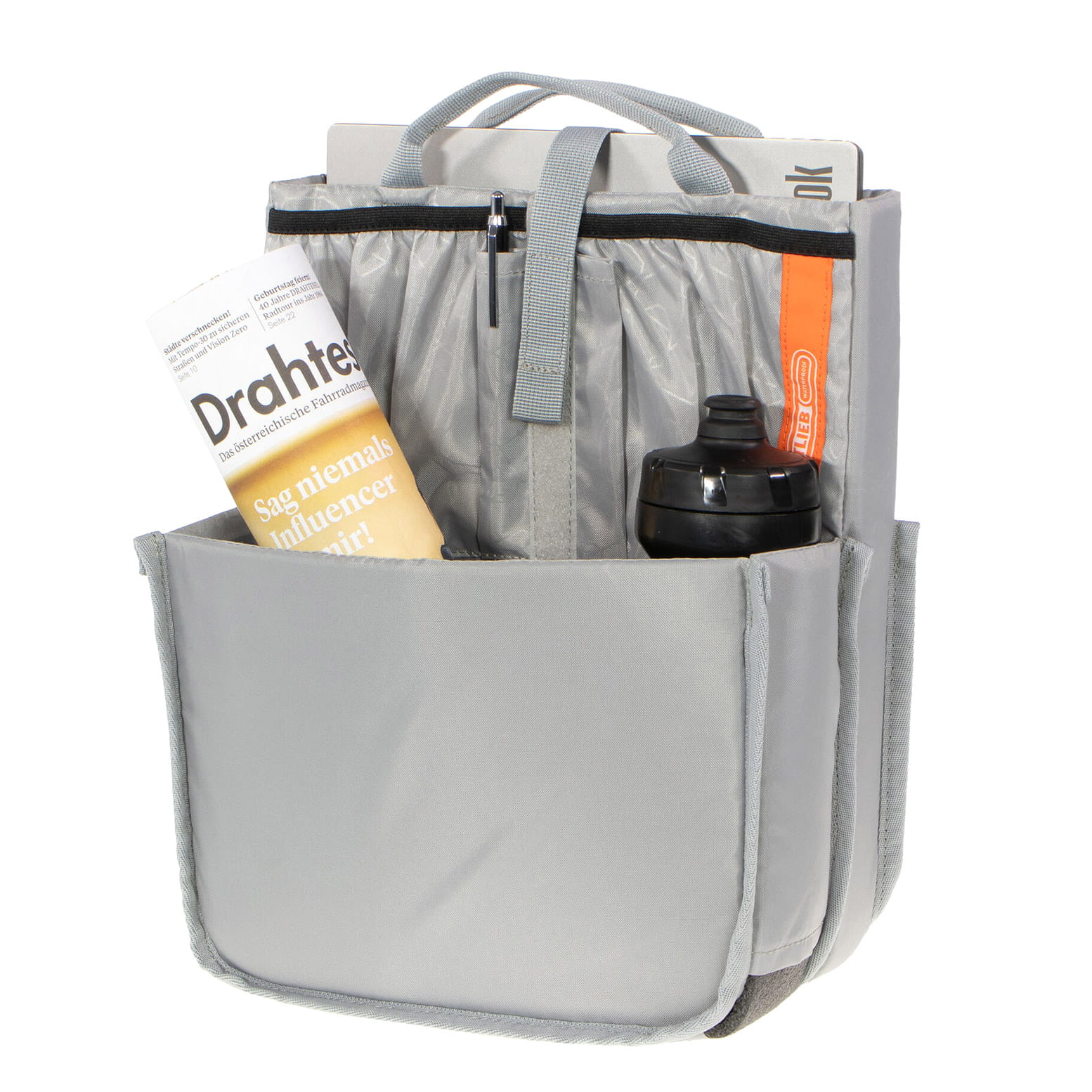 Alles organisiert und immer griffbereit mit dem Ortlieb Commuter Insert S Tascheneinsatz. Packe ihn entspannt zu Hause: Laptop, Lunchbox, Unterlagen, Trinkflasche, Smartphone – sogar Wechselkleidung oder Schuhe finden Platz. Einfach einstecken und losfahren! Kein Chaos, kein Suchen, keine verlorenen Sachen mehr in der Fahrradtasche.