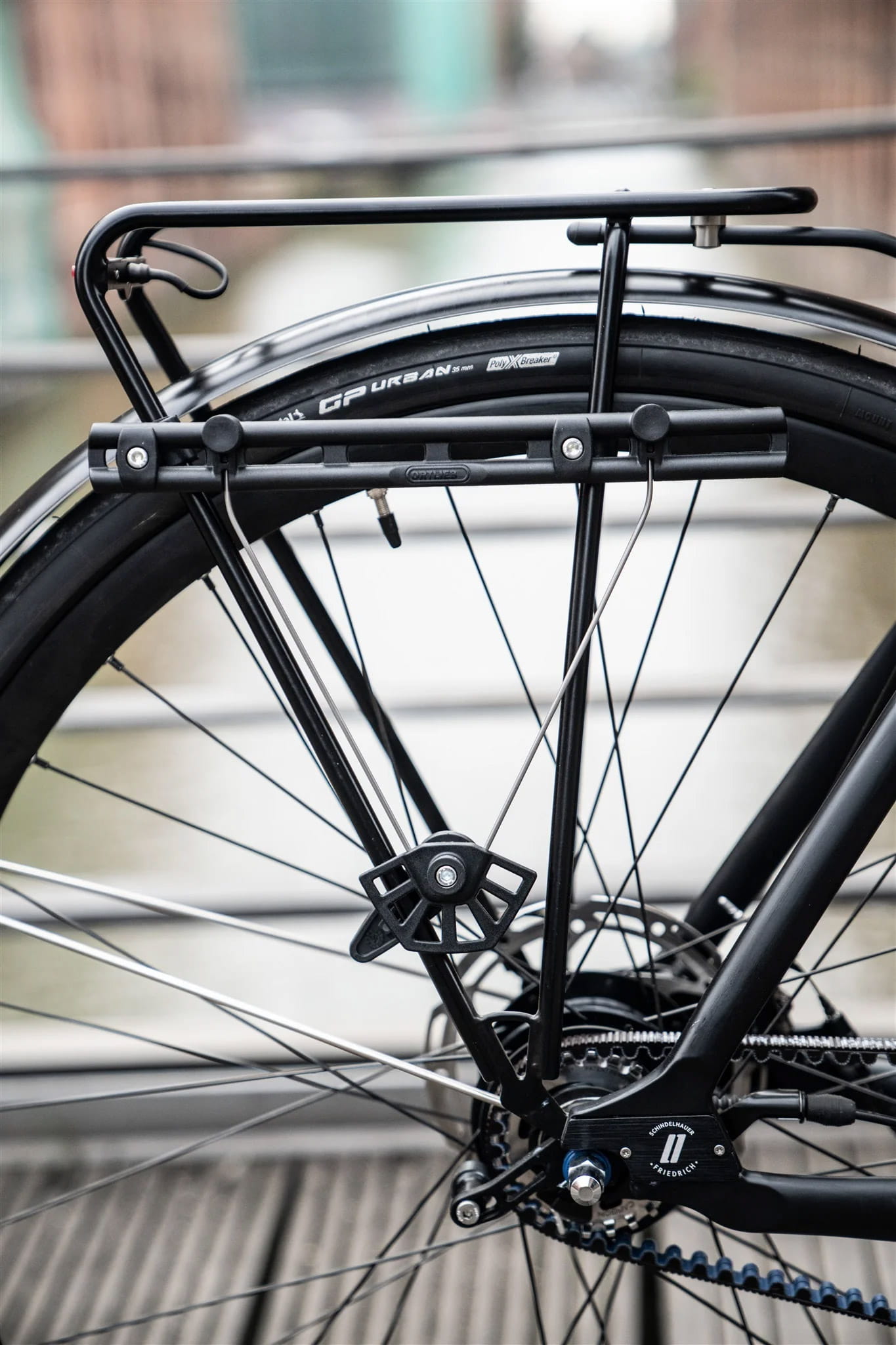 Schraube das Trägersystem einfach an deinen Gepäckträger und schon kann die Fahrt beginnen.