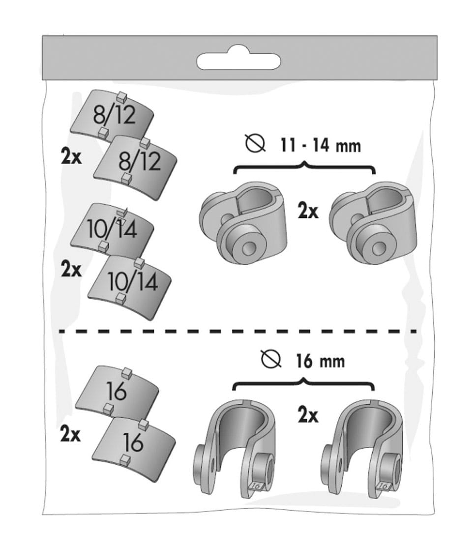 Ist der Durchmesser deiner Gepäckträgerrohre zu groß, kannst du mit diesen Befestigungsschellen dein QL3.1 Montageset ganz leicht am Gepäckträger montieren.
