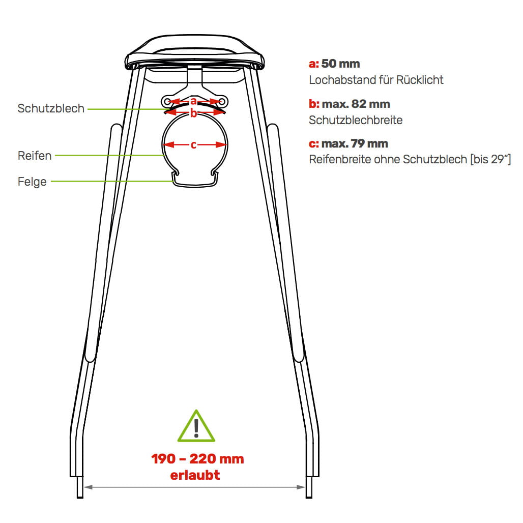 - Max. Reifenbreite (ohne Schutzblech): 79 mm (3.00 Zoll)