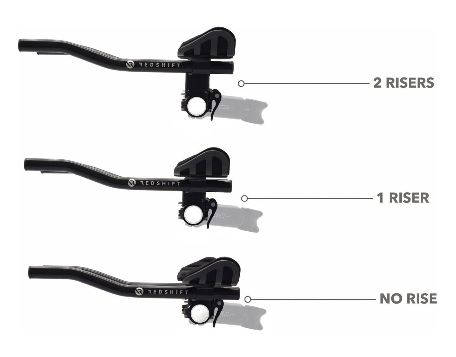 Dieses Riser Kit ist ausschließlich mit Redshift Quick Release Aerobars kompatibel, die nach Januar 2020 verkauft wurden. Aeroaufsätze mit der älteren 12 mm hohen Dovetail-Klemmung sind nicht kompatibel und dürfen nicht mit diesem Kit verwendet werden.