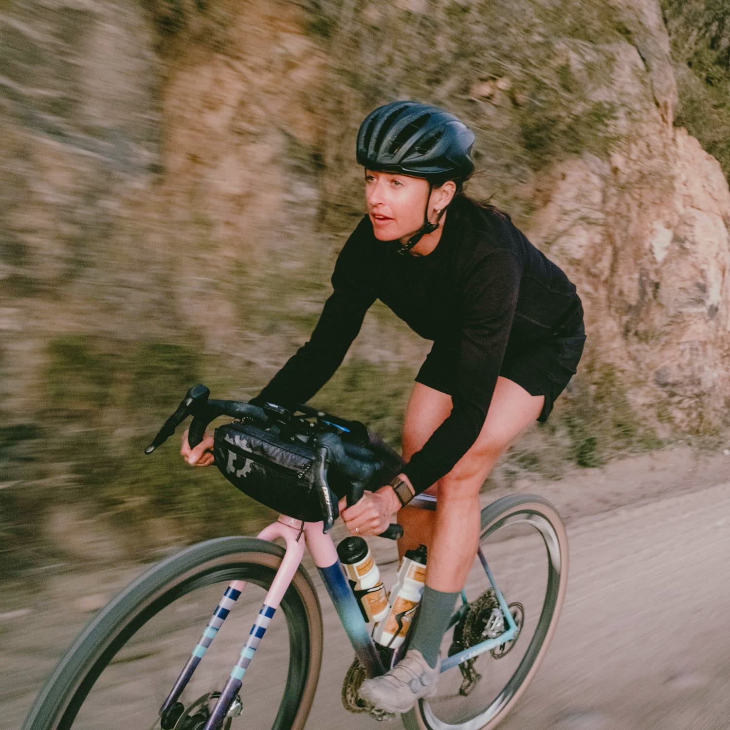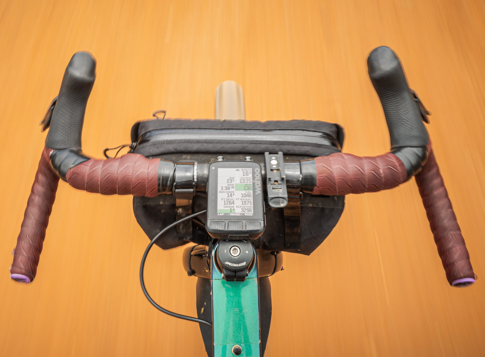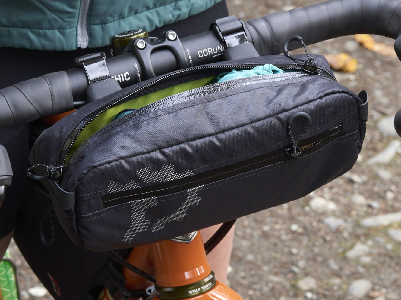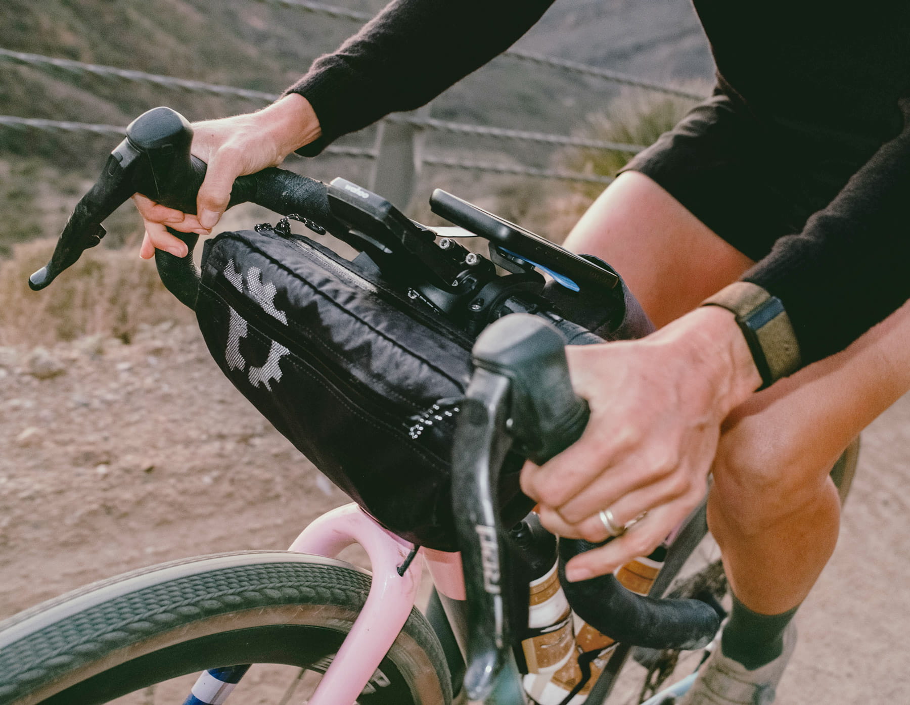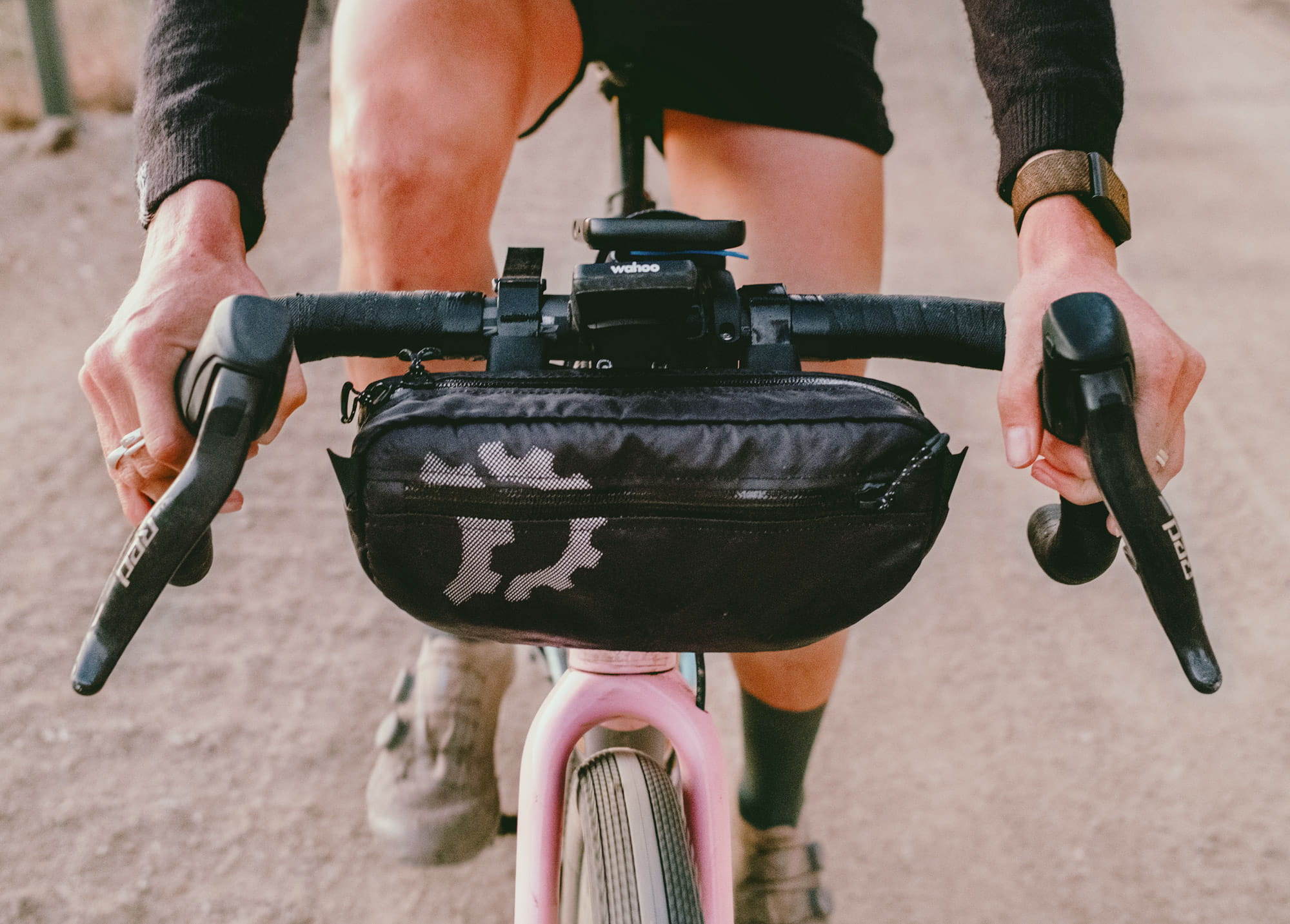 The Revelate Designs Campamocha efficiently utilizes the space toward the head tube, providing surprisingly generous storage without adding bulk to the handlebars. Its slim profile ensures all hand positions on drop bars or flat bars remain fully accessible – perfect for gravel riding, training rides, and bikepacking.