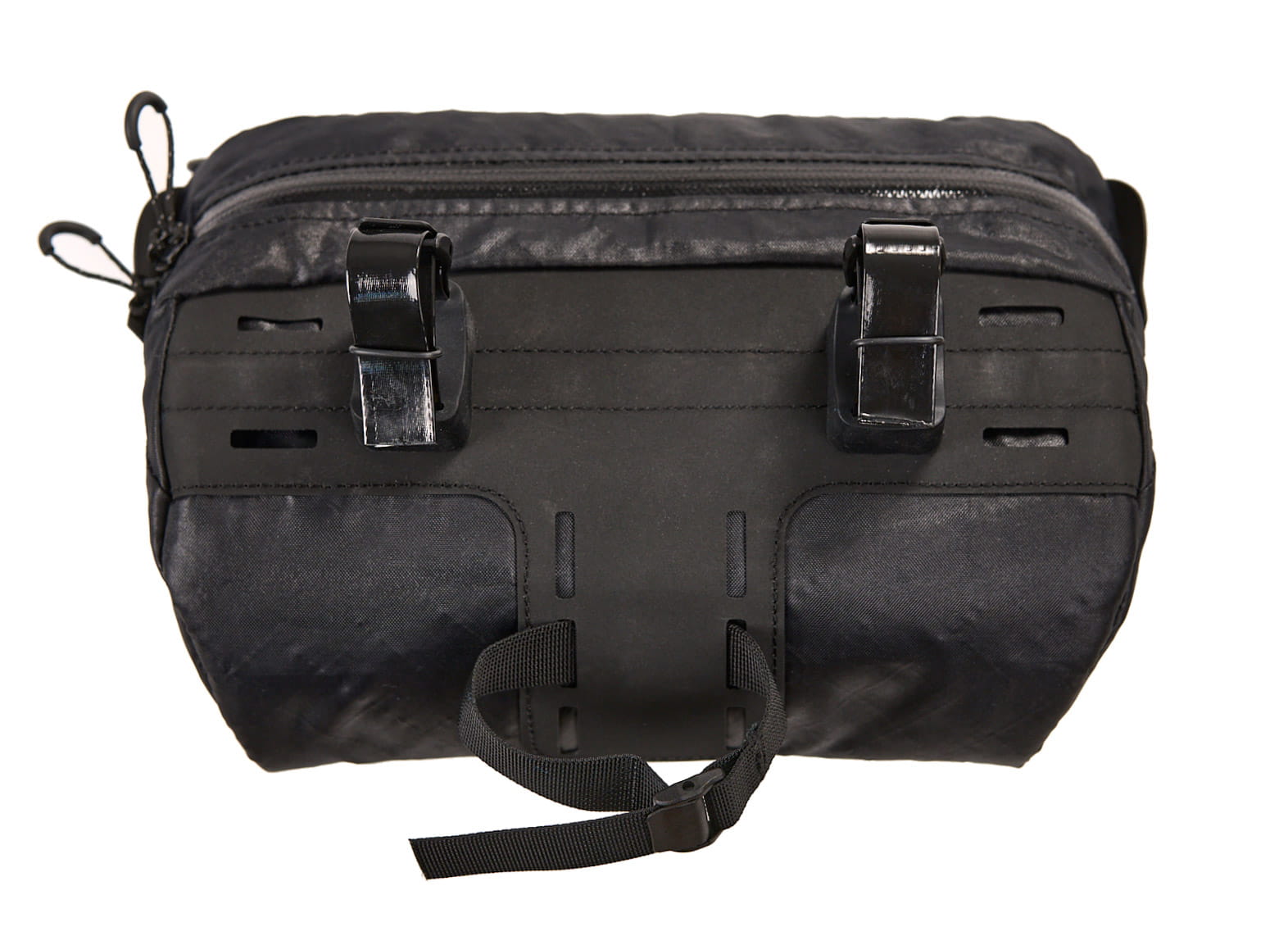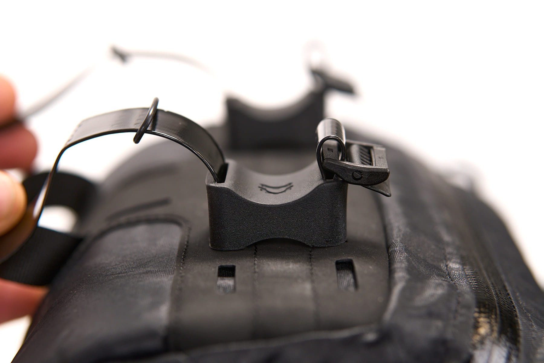 The Campamocha is reinforced with closed-cell foam to give the bag a stable shape. The mounting system uses two molded rubber blocks connected to a fiberglass stiffener, ensuring a secure attachment while keeping the bag optimally spaced from the handlebars.