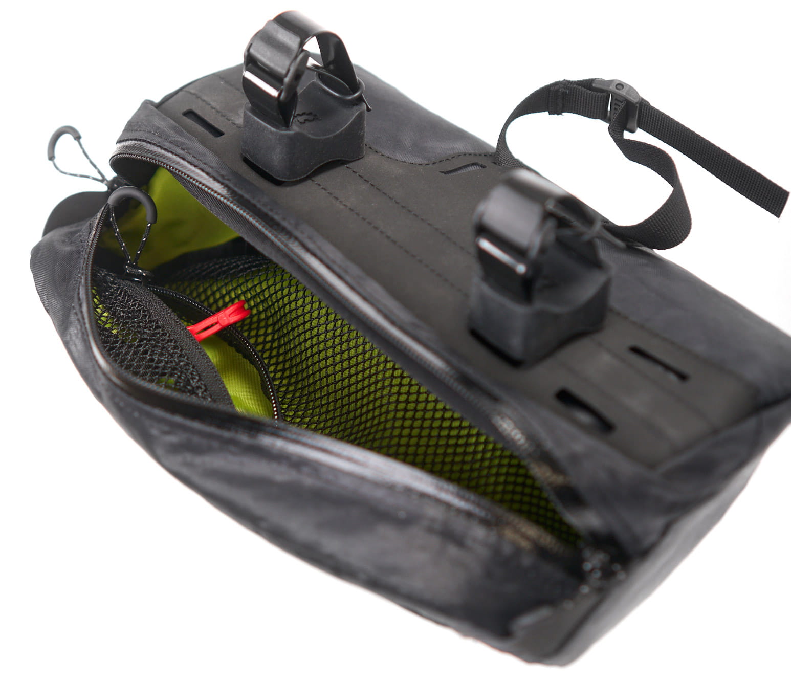 Thanks to the well-designed mounting system, the bag sits securely with sufficient clearance from the handlebars. Brake levers, multiple hand positions, and additional accessories remain unaffected. Your cockpit stays organized and functional, even on longer rides.