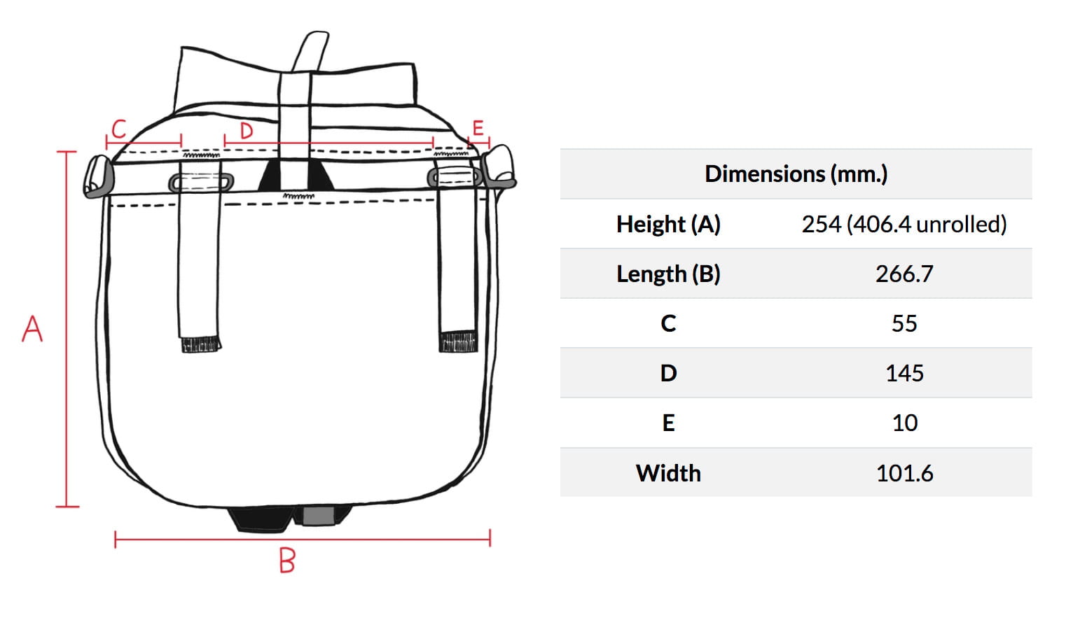 - Entwickelt für den Transport von dichten und schweren Gegenständen wie z. B. Lebensmitteln oder Wasser bei Touren die es nicht zulassen die Vorräte regelmäßig aufzufüllen