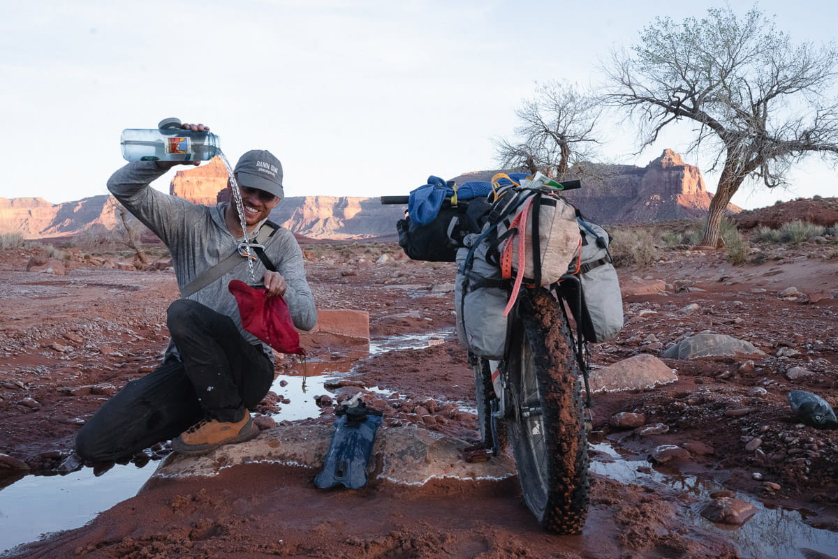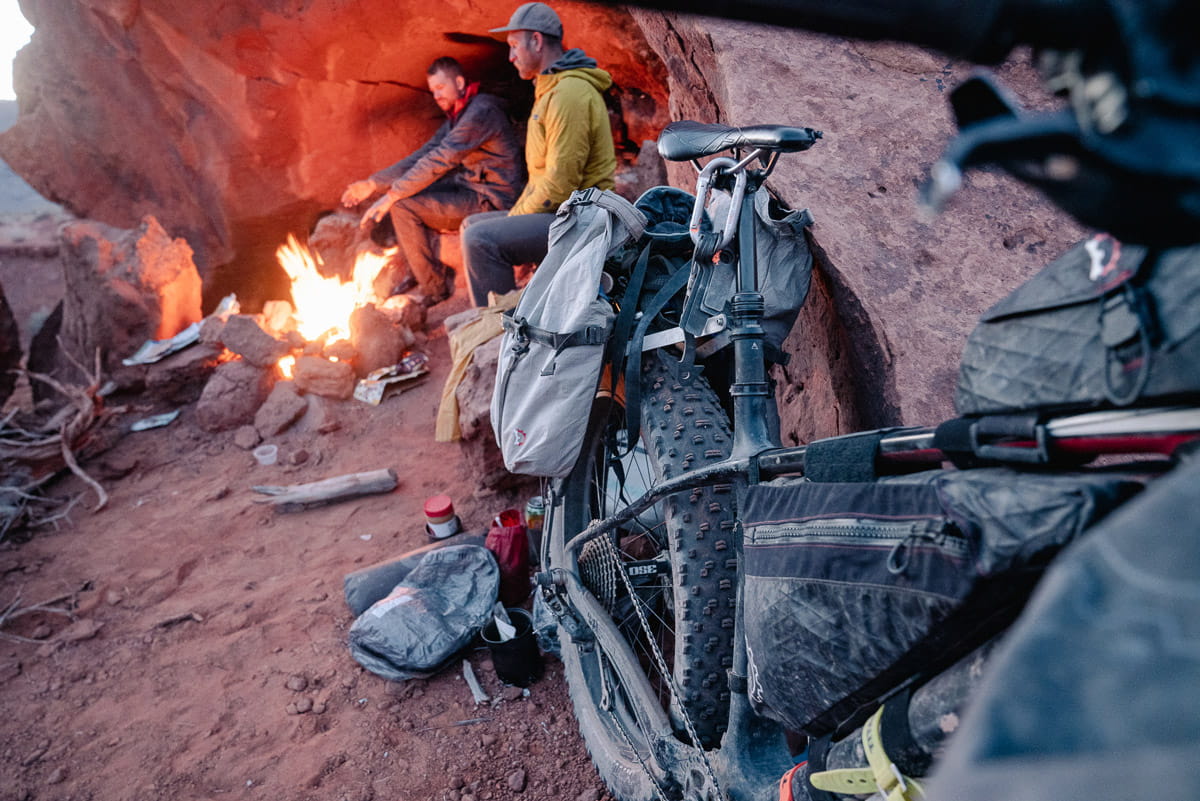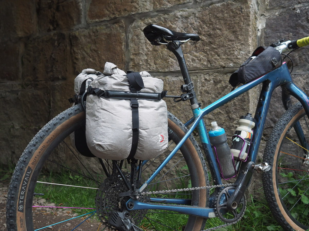 - Beim Bikepacking sollten Gegenstände wie Kleidung, Schlafsack, etc. die zuverlässig vor Nässe geschützt sein müssen weiterhin in den üblichen Punkten wie Satteltasche oder Lenkerrolle verstaut werden