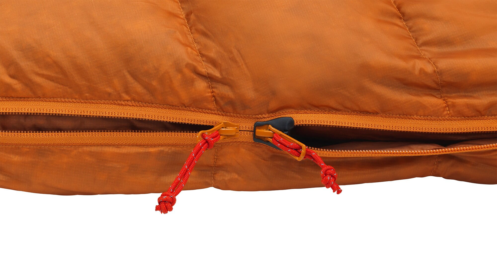 Der weich gefütterte Innenstoff sorgt für ein angenehmes Schlafklima. Unterschiedlich starke Kordelzüge ermöglichen eine schnelle Anpassung mit einem Griff, während der YKK-Reißverschluss mit Einklemmschutz einen reibungslosen Einstieg bietet. Praktische Aufhängeschlaufen erleichtern das Lüften nach der Tour.